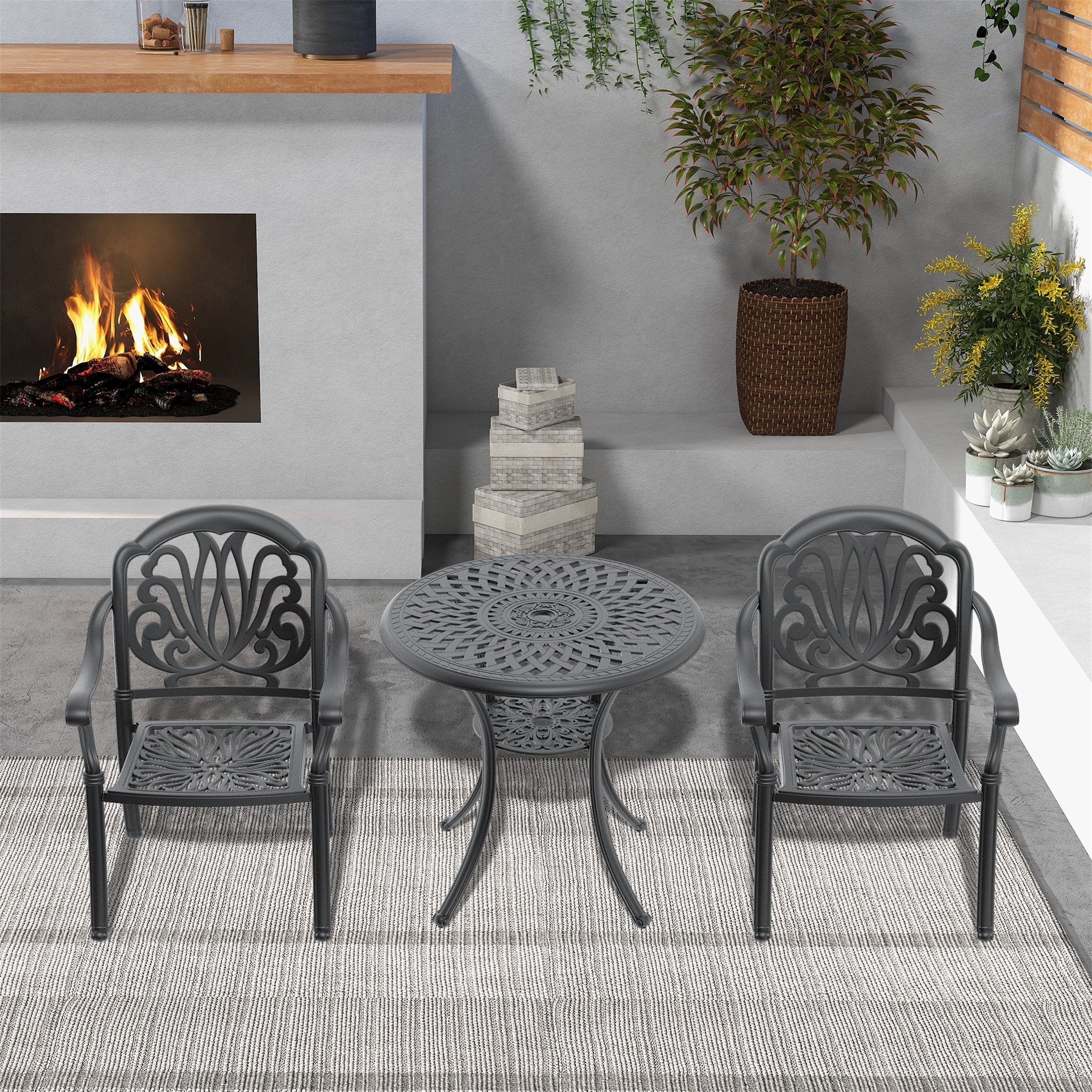 3-Piece Cast Aluminum Patio Bar Stool Set of 1 Bar Table & 2 Swivel High Bar Stools