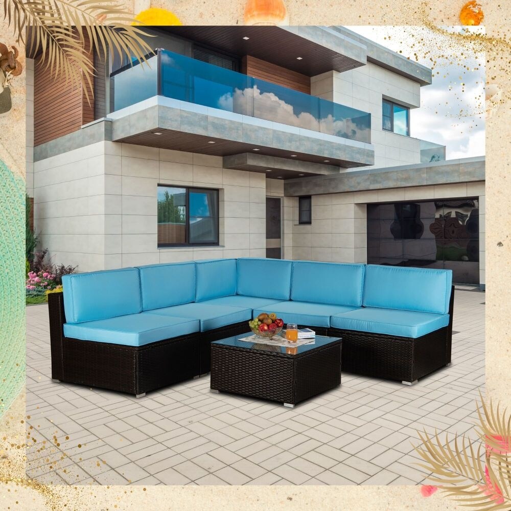 7 PCS Patio Furniture Set Sectional Rattan Sofa Set with Coffee Table