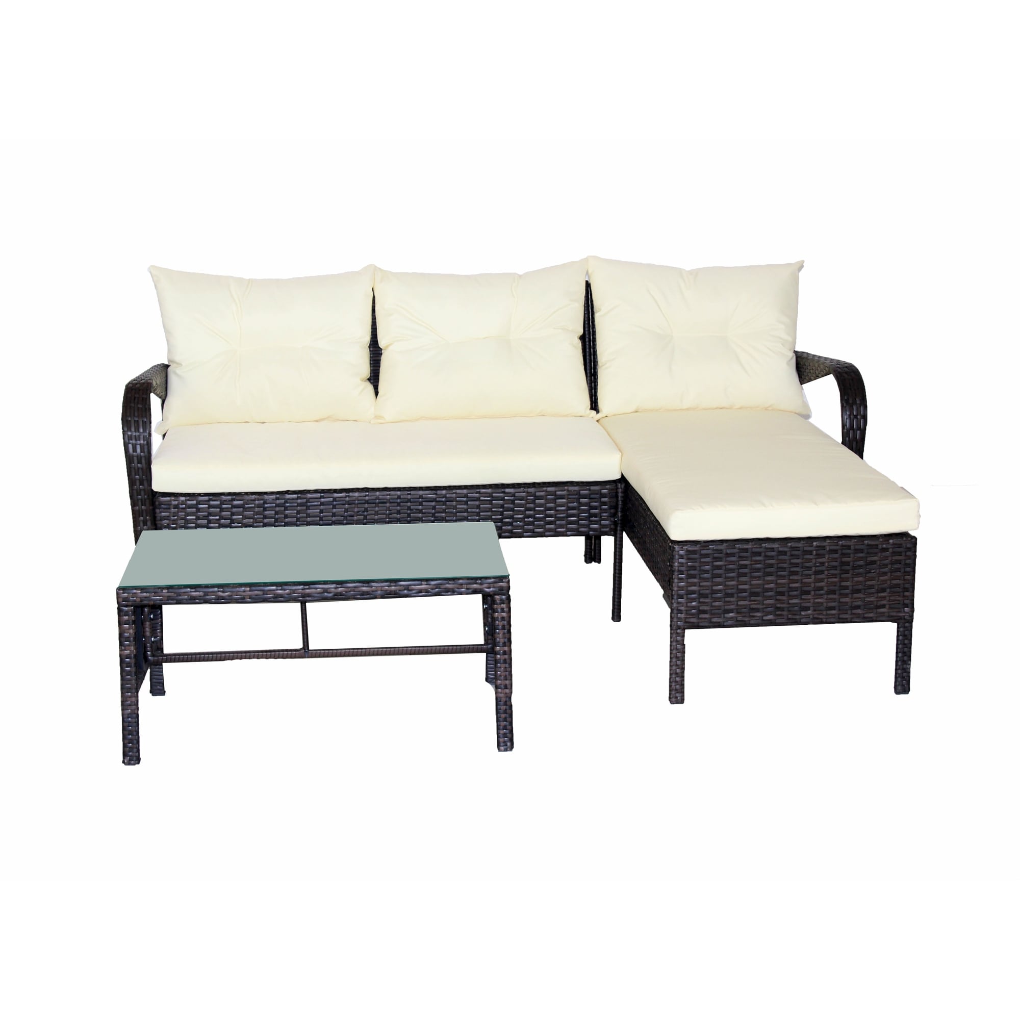 3-Pieces Outdoor Garden Patio Furniture Sets for 3-4, PE Wicker Sectional Cushioned Sofa Sets for Any Indoor or Outdoor Places