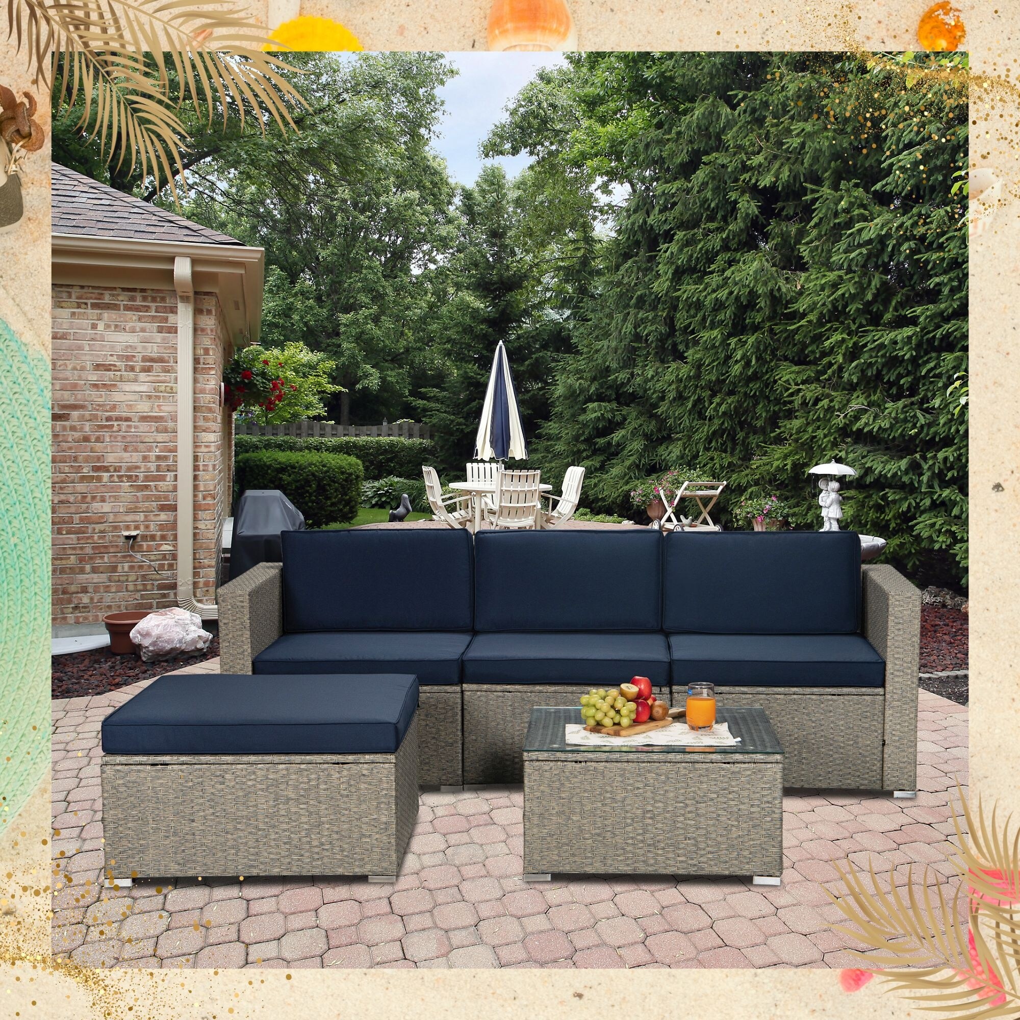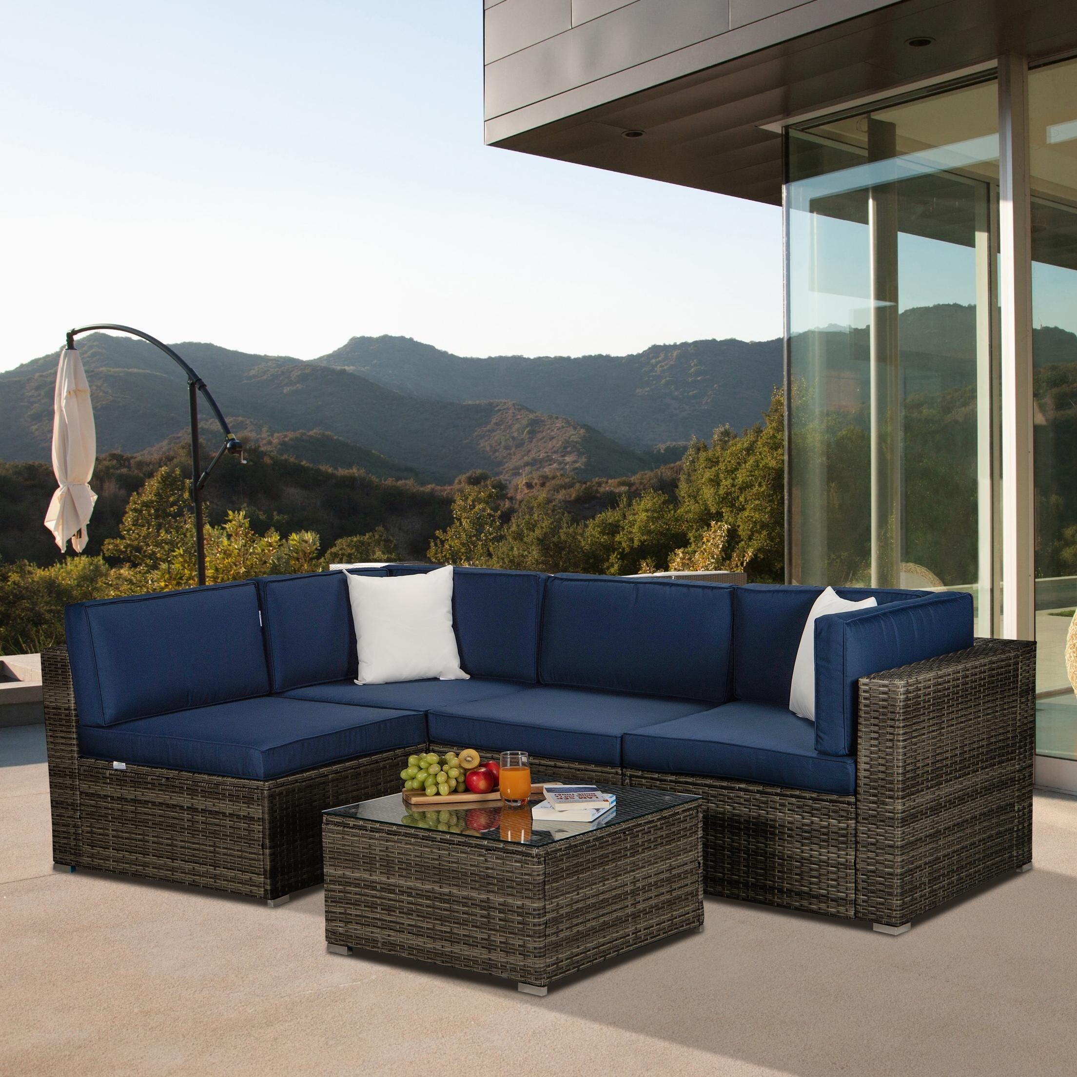 5 Pieces Patio Furniture Set Rattan Outdoor Sectional Conversation Set