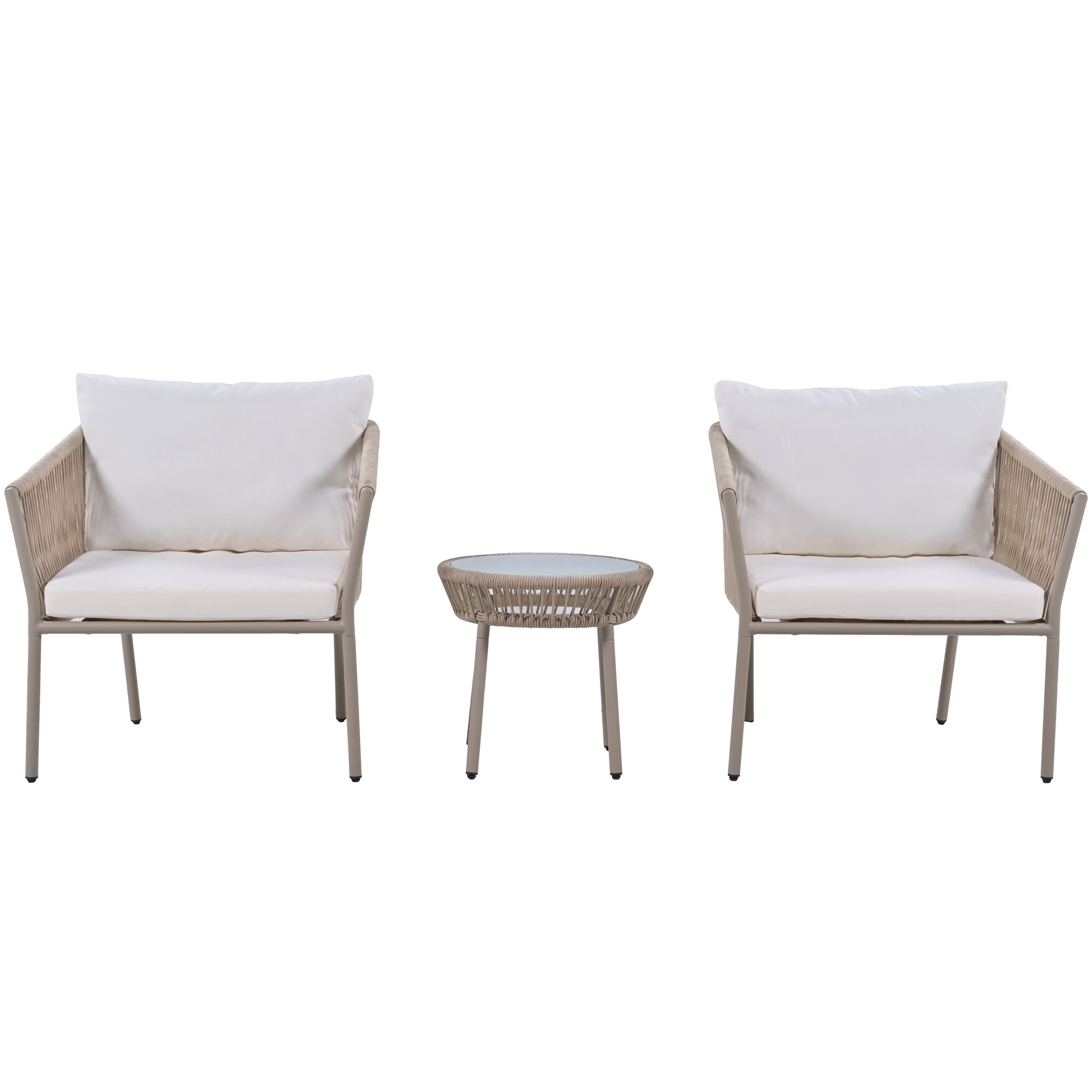 3 PCS Outdoor Rattan Conversation Set Patio Garden Chair Coffee Table