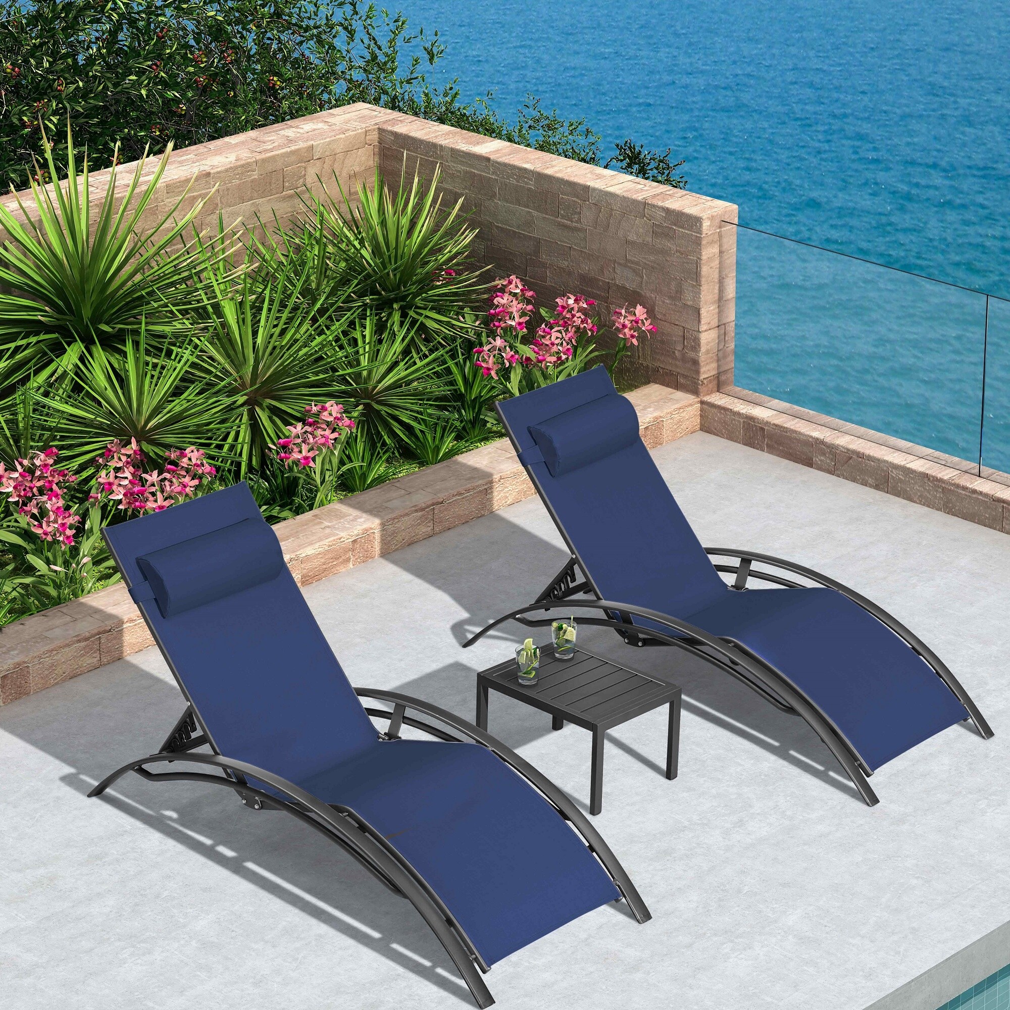 PATIO FESTIVAL 3-Piece Outdoor Chaise Lounger Set and Table