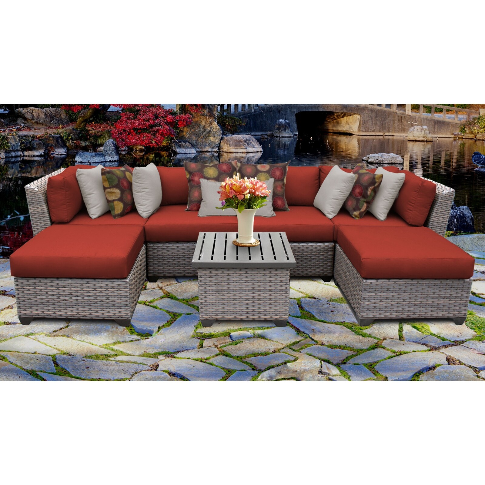 Florence 7 Piece Sectional Seating Group with Cushions and Optional Sunbrella Performance Fabric