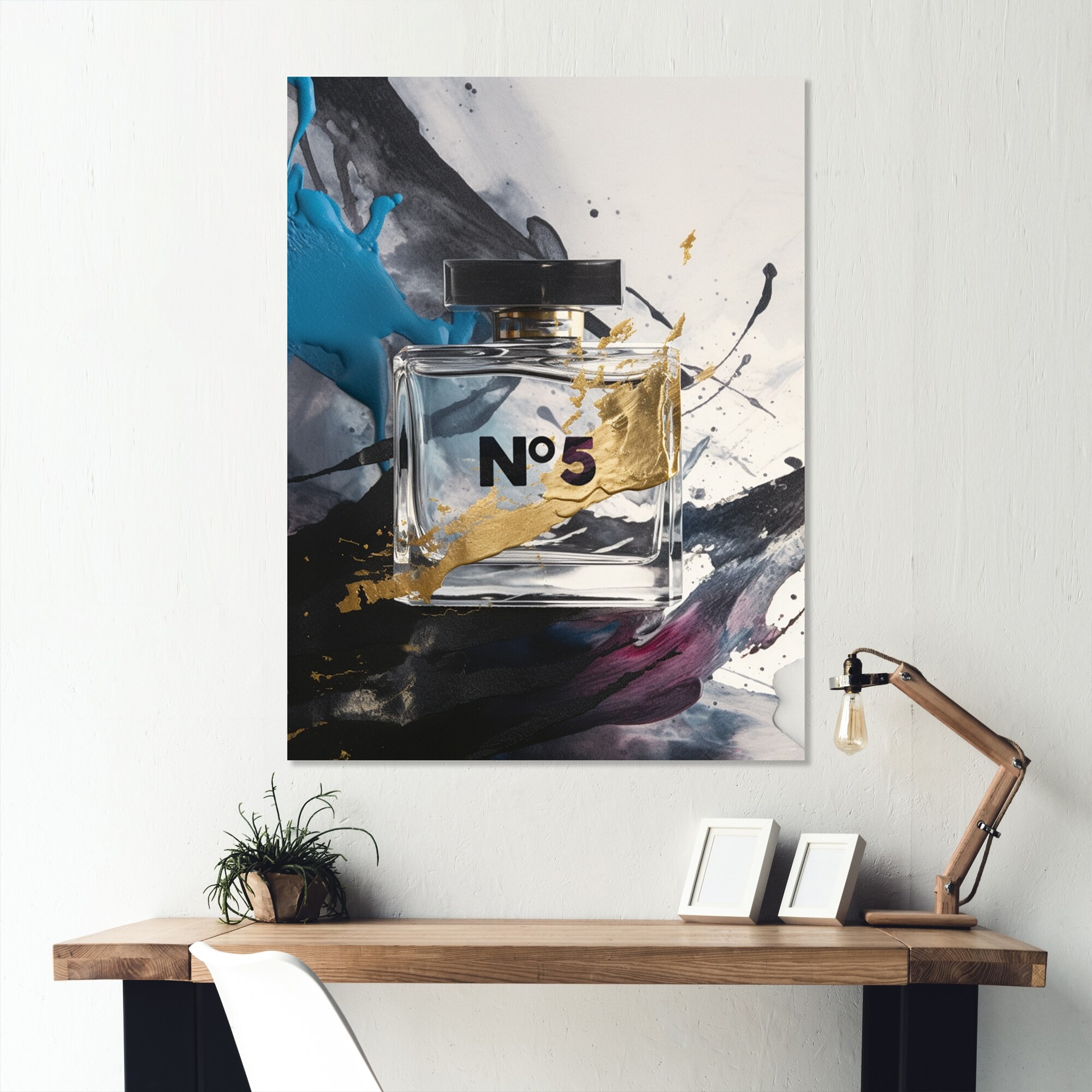 iCanvas "Metallic Purple & White on Black Grunged No5 Paris Perfume Bottle" by Pomaikai Barron Canvas Print