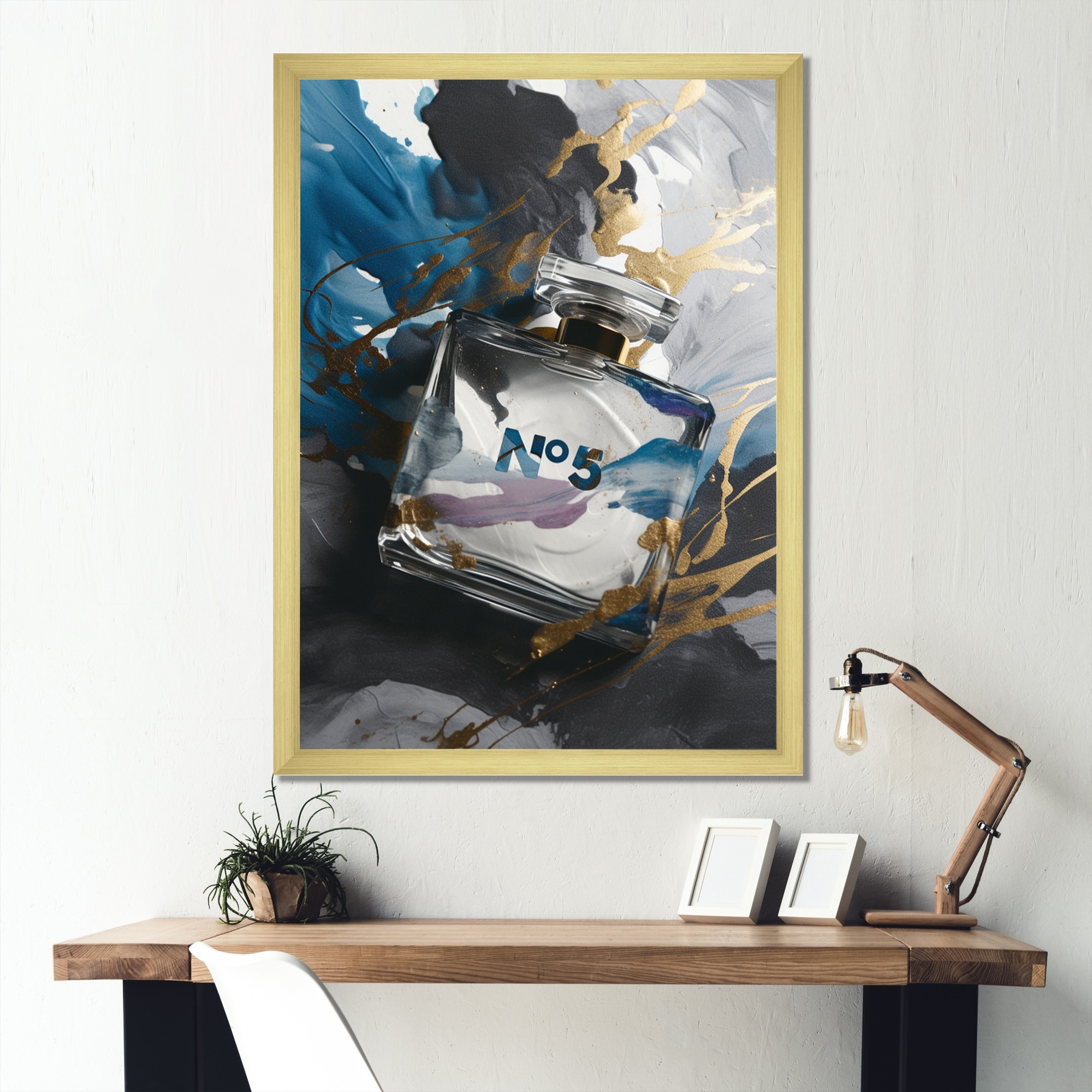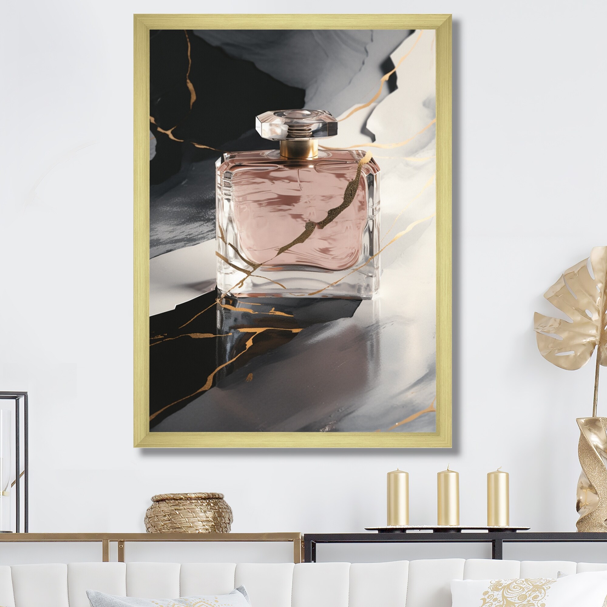 Designart "Gold Perfume Couture Iii" Fashion Perfume Framed Wall Art for Living Room