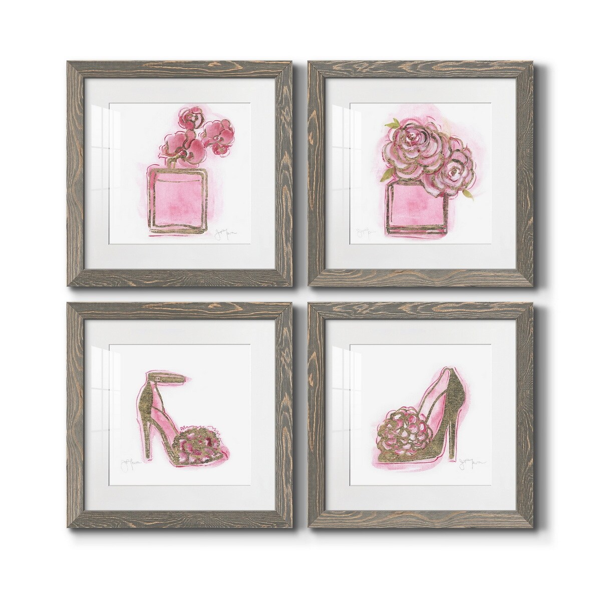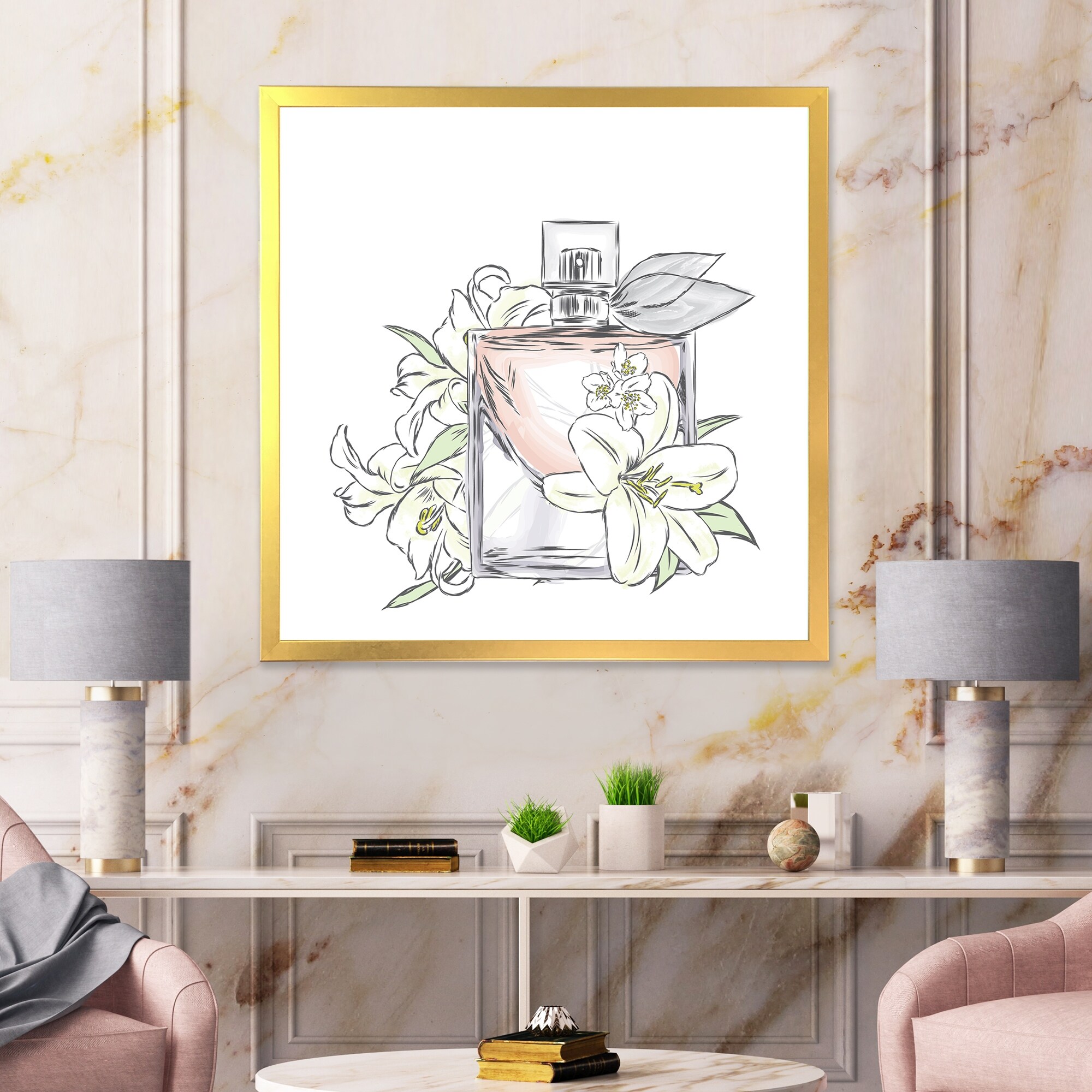 Oliver Gal 'Pairs Bouquet' Fashion and Glam Wall Art Framed Canvas Print Perfumes - Pink, White