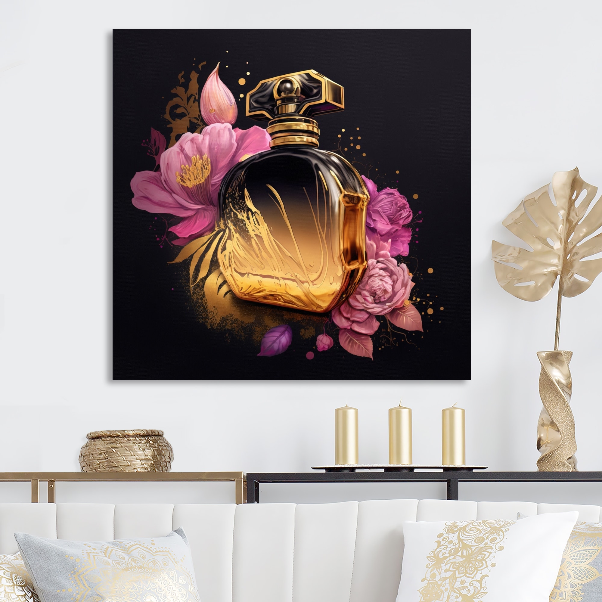 iCanvas "Gold And Bright Pink Perfume Bottle" by Amanda Greenwood Canvas Print