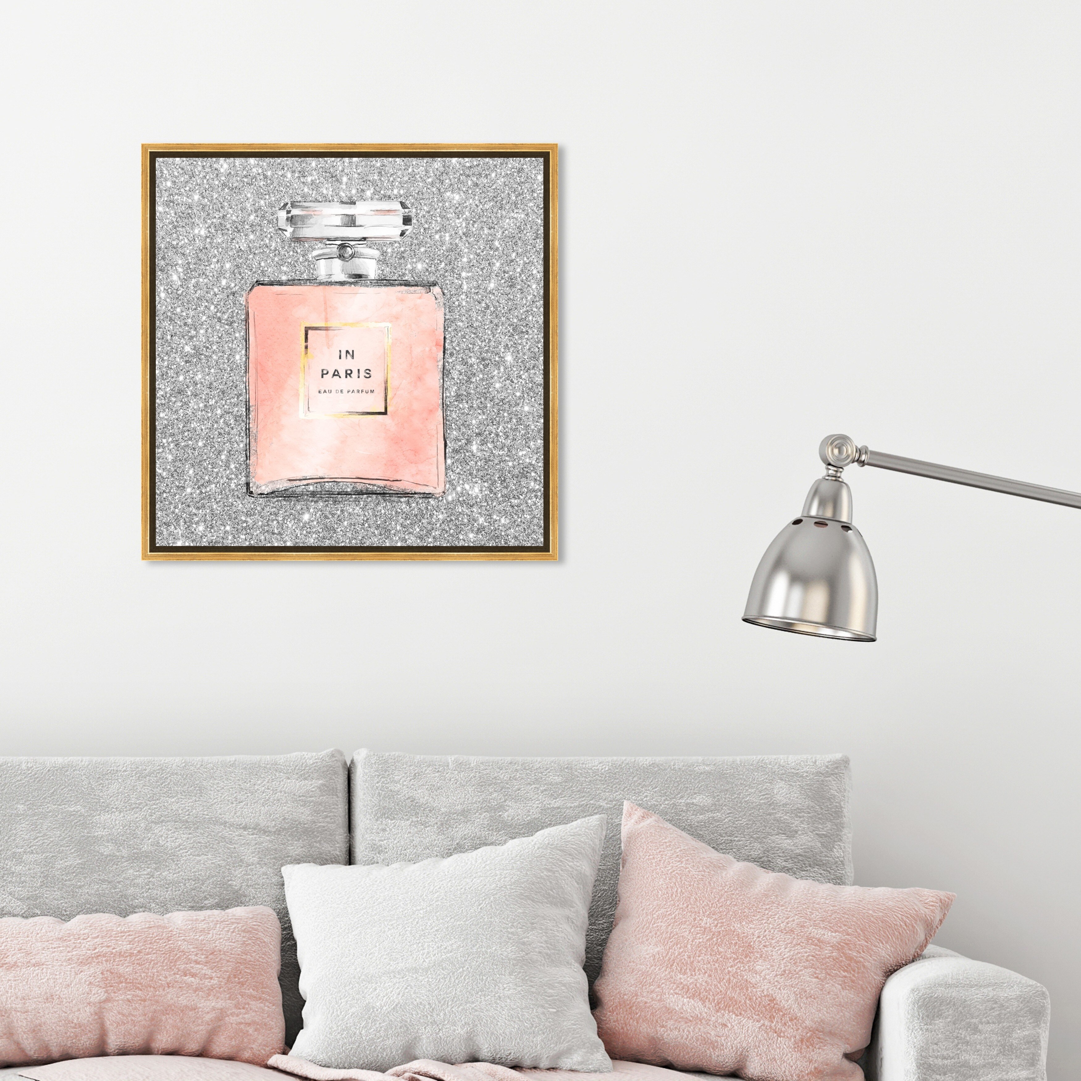 Oliver Gal 'Paris Glitter Spring' Fashion and Glam Wall Art Framed Canvas Print Perfumes - Gray, Pink