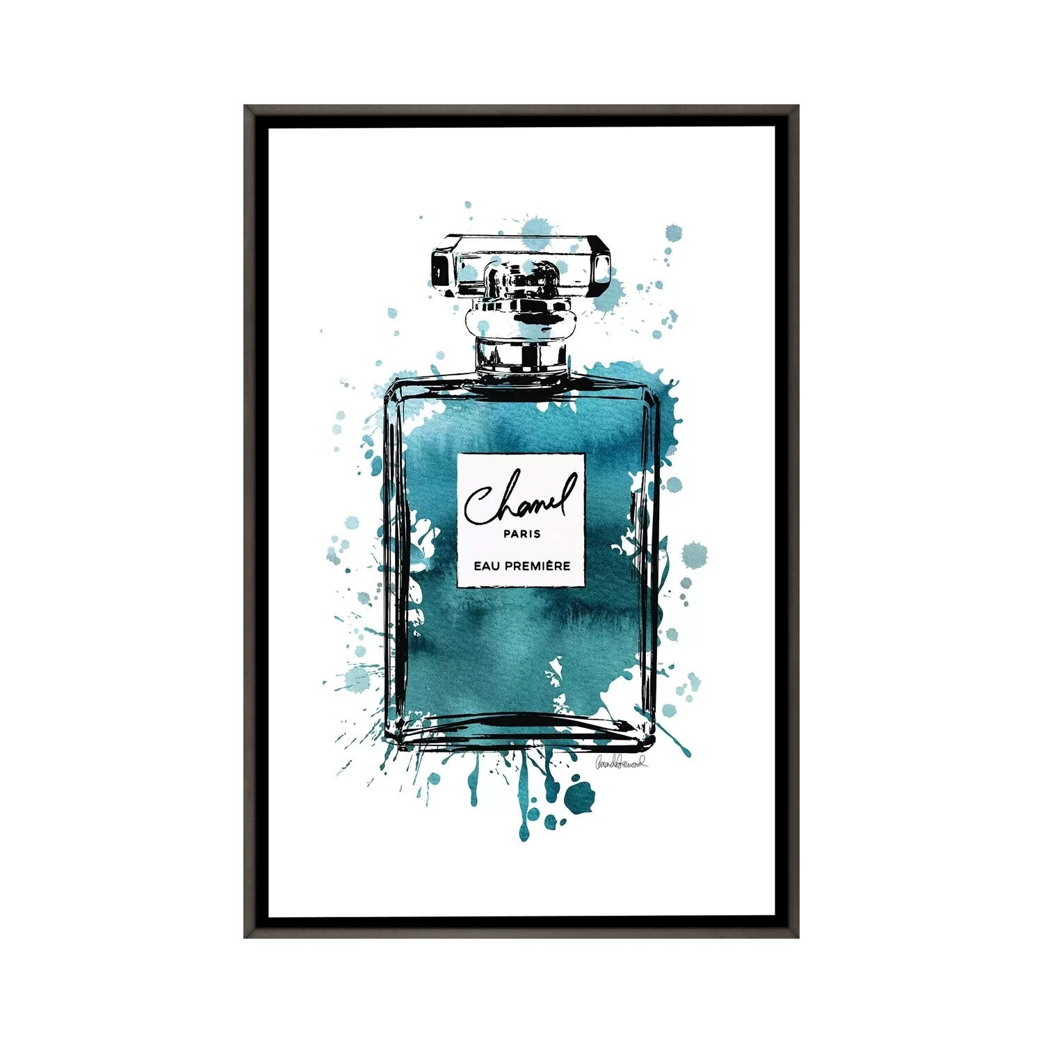iCanvas "Inky Perfume Bottle Teal Black" by Amanda Greenwood Framed