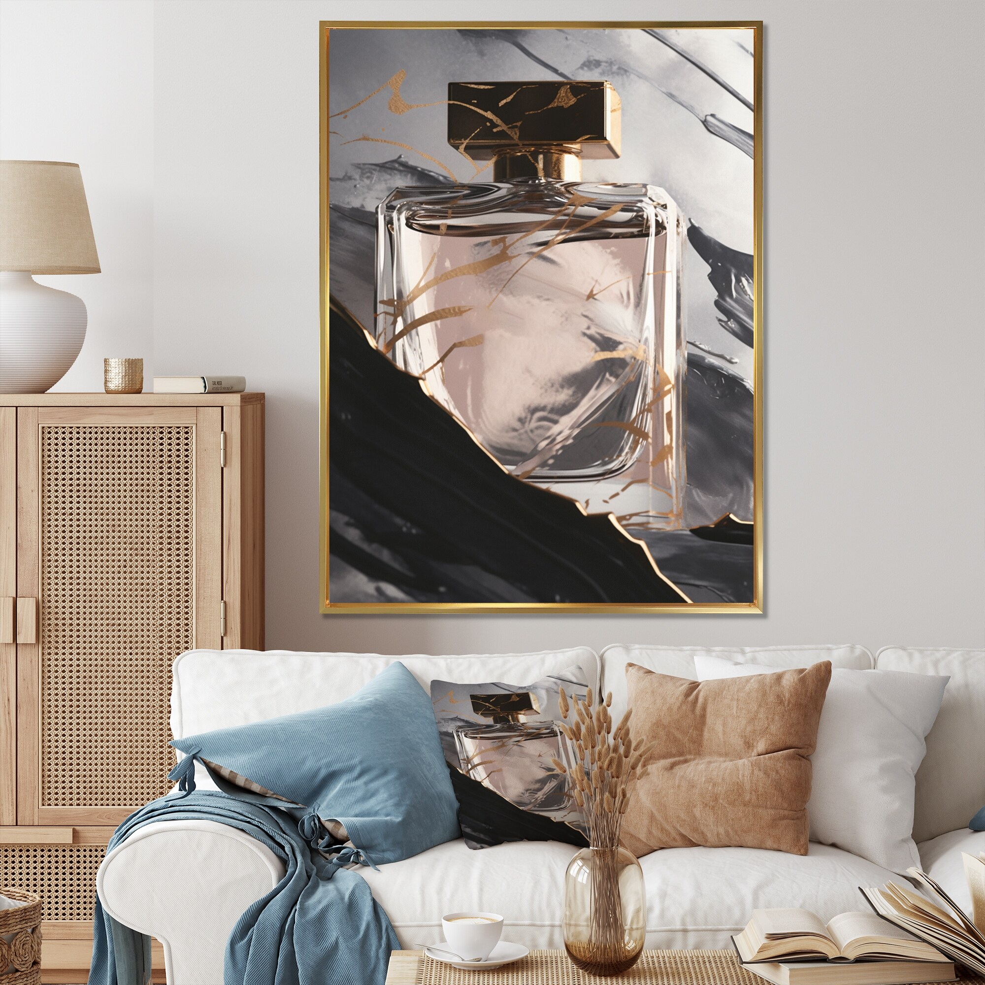 Designart "The Essence of Perfume I" Fashion Perfume Framed Canvas Art Print