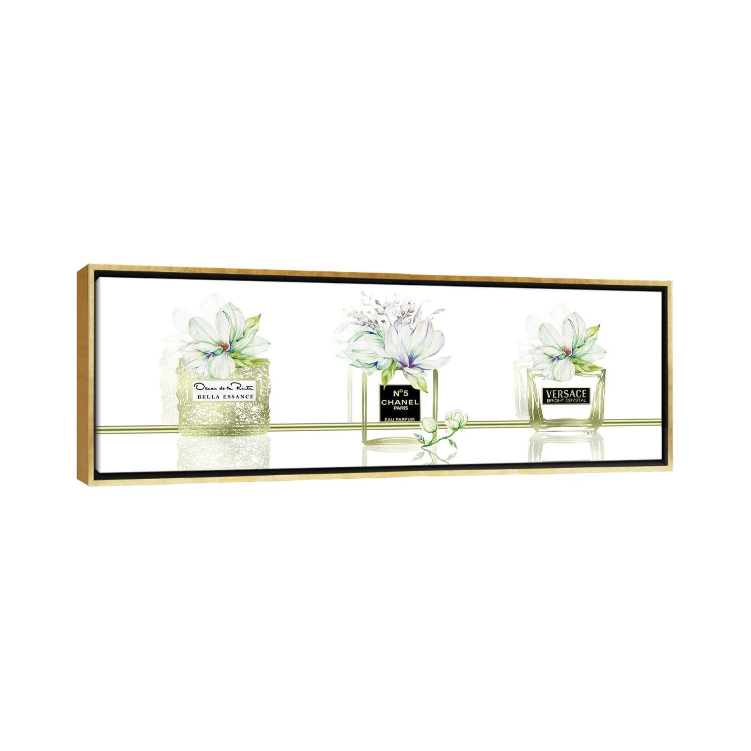 iCanvas "Golden Breeze Set of 3 Perfume Bottles With Magnolias" by Pomaikai Barron Framed Canvas Print