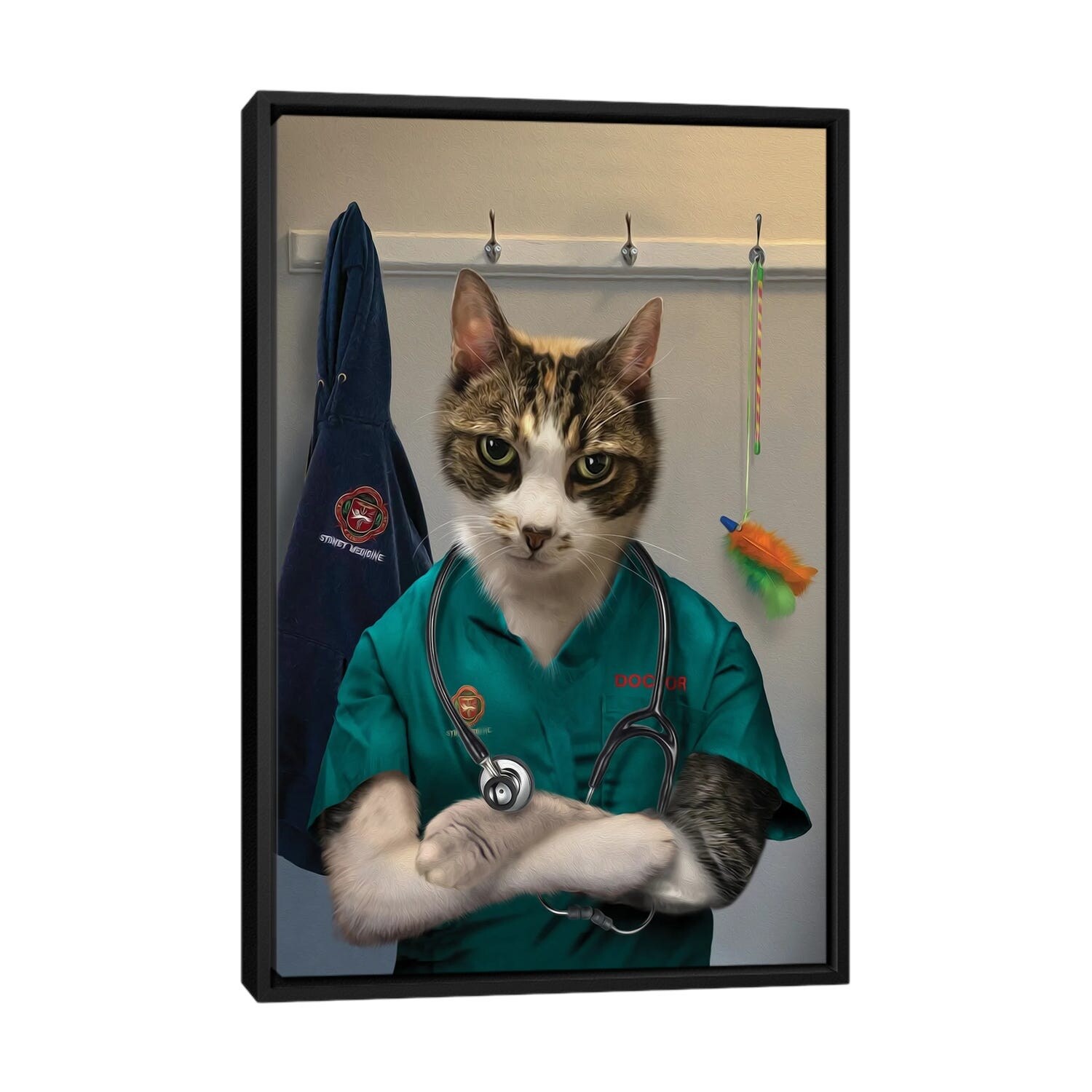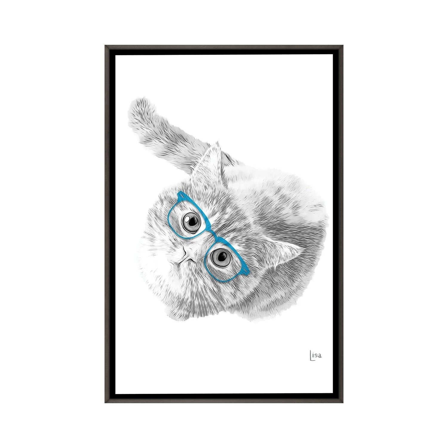 iCanvas "Cat With Blue Glasses" by Printable Lisa's Pets Framed