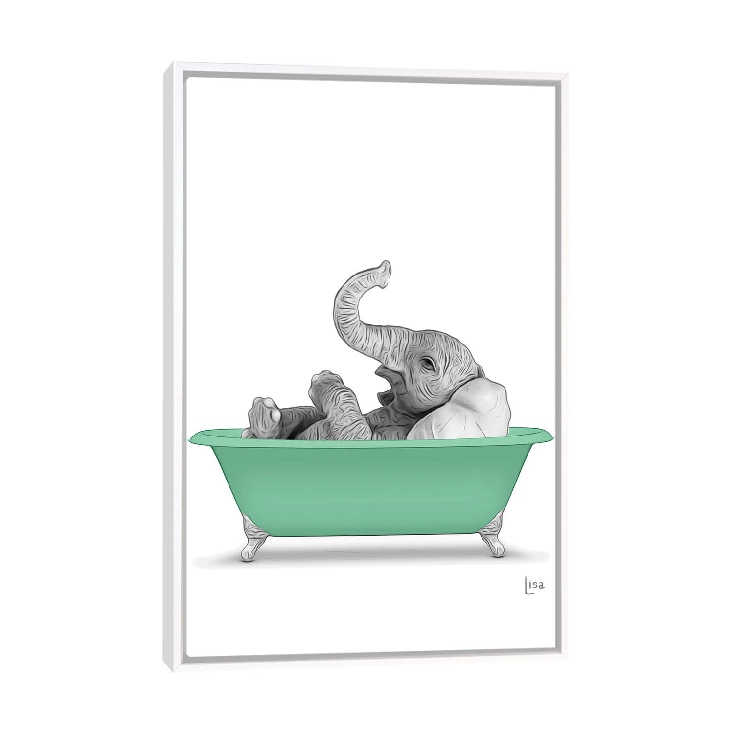 iCanvas "Elephant In the Green Bath" by Printable Lisa's Pets Framed