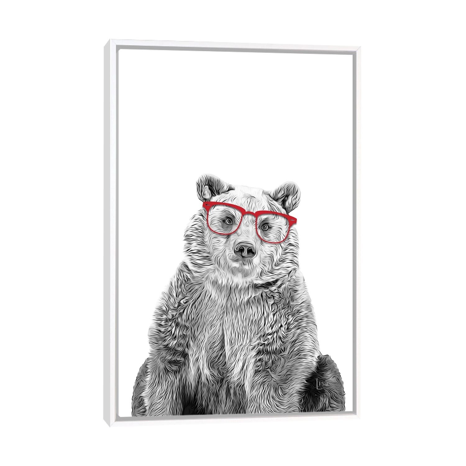 iCanvas "Bear With Red Glasses" by Printable Lisa's Pets Framed Canvas Print
