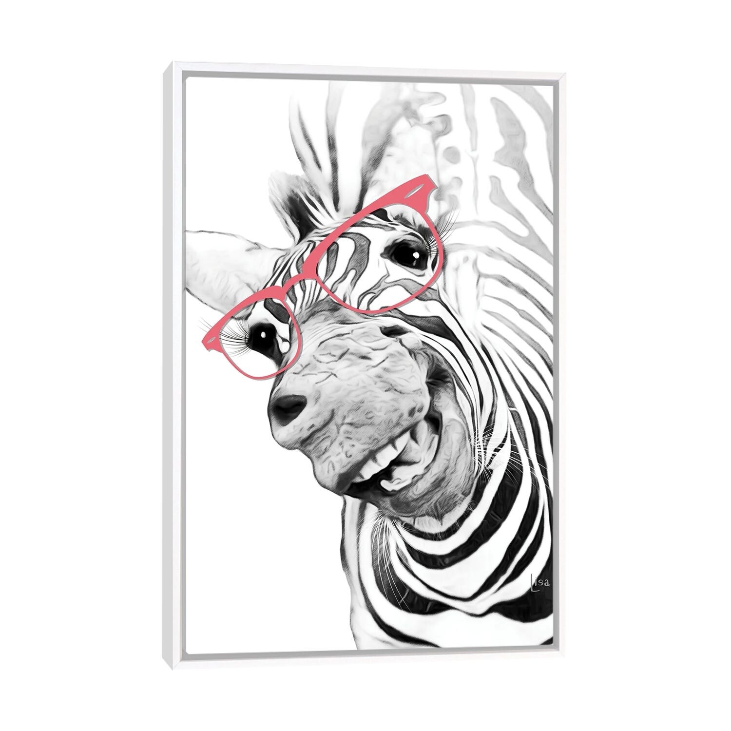 iCanvas "Zebra With Glasses" by Printable Lisa's Pets Framed
