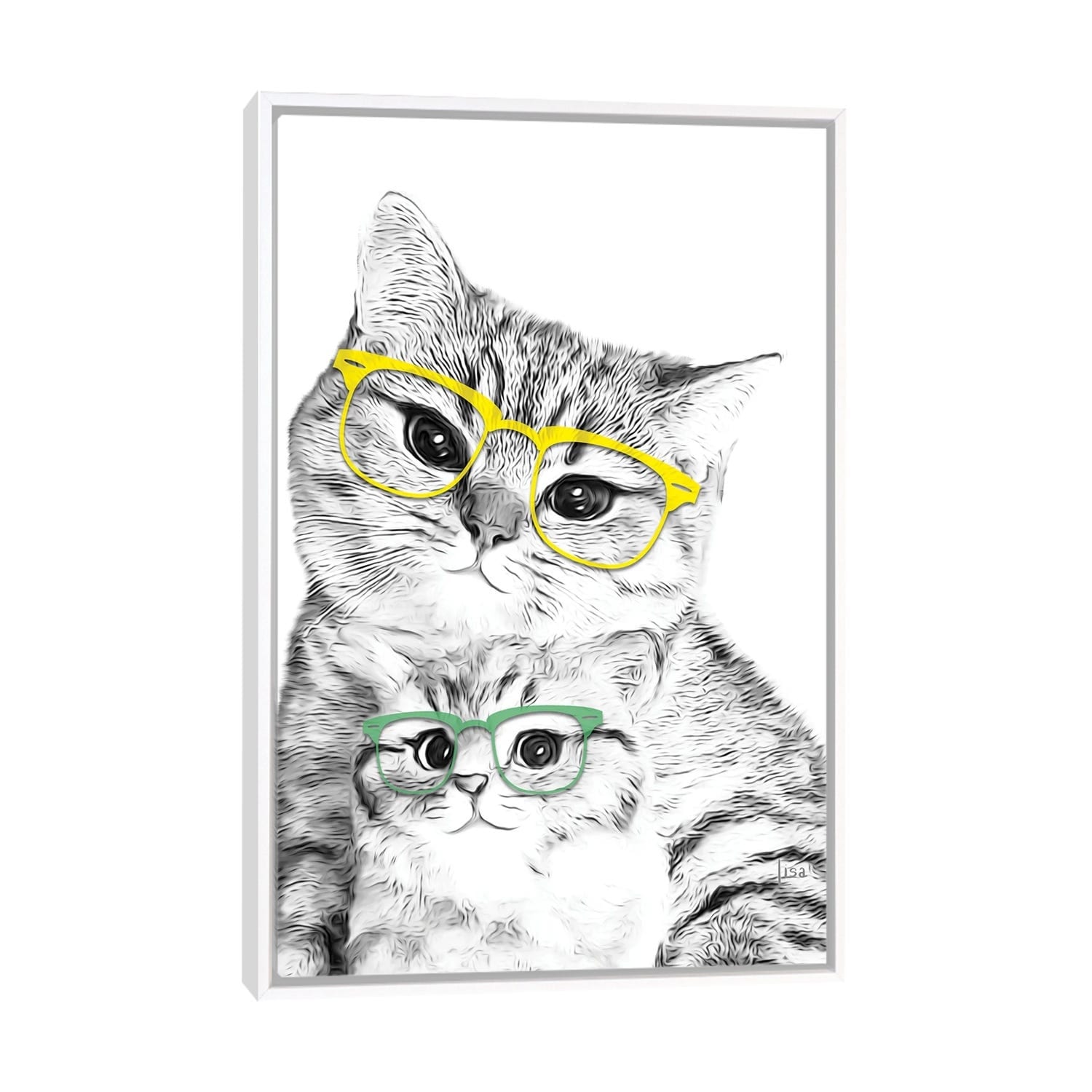 iCanvas "Two Cats With Colored Glasses" by Printable Lisa's Pets Framed Canvas Print
