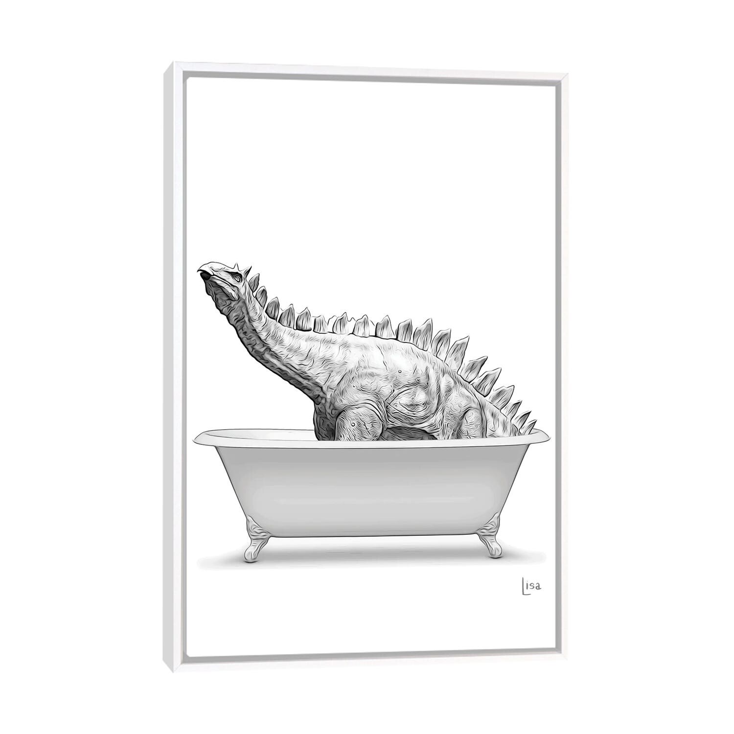 iCanvas "Stegosaurus In Bathtub" by Printable Lisa's Pets Framed Canvas Print