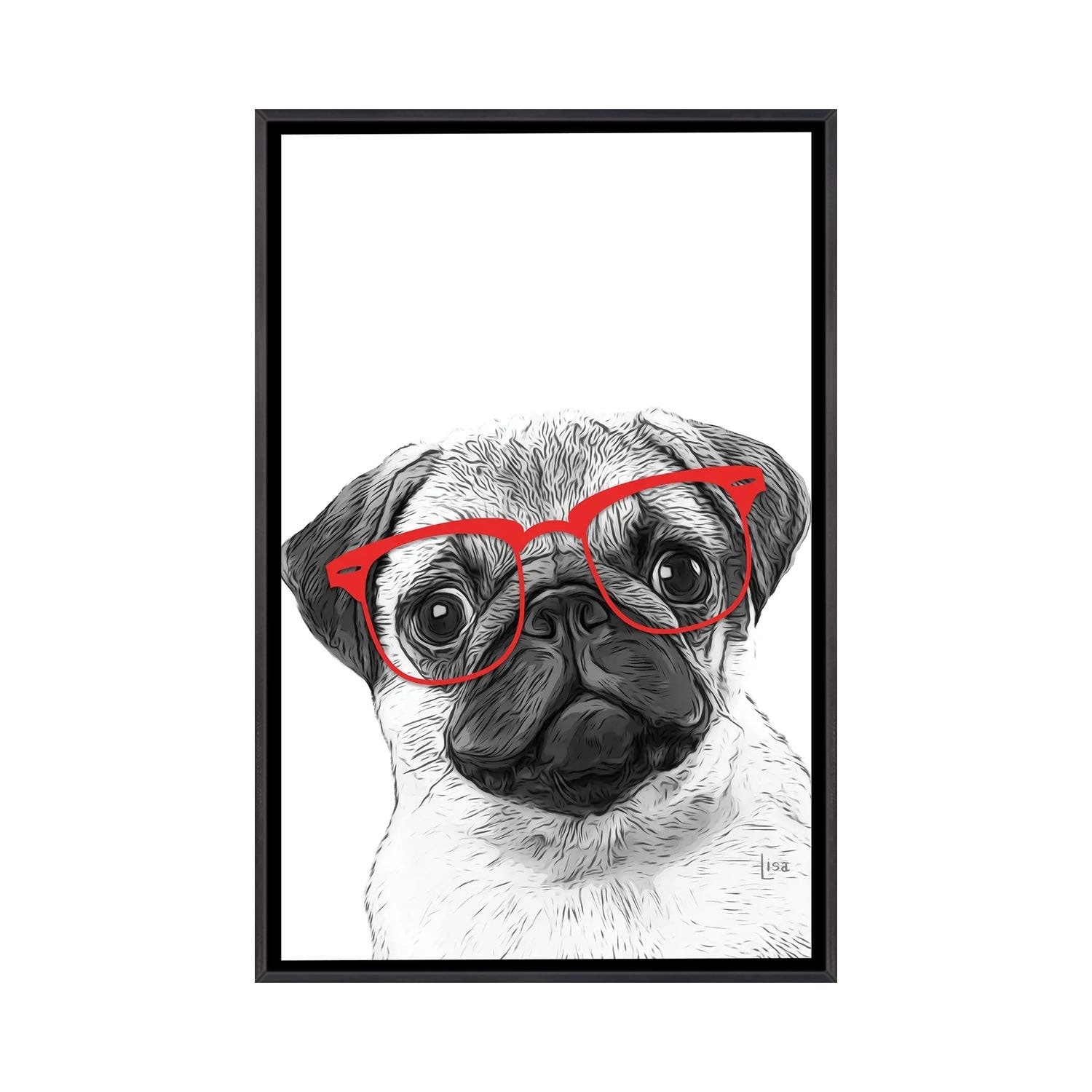 iCanvas "Pug With Red Glasses" by Printable Lisa's Pets Framed