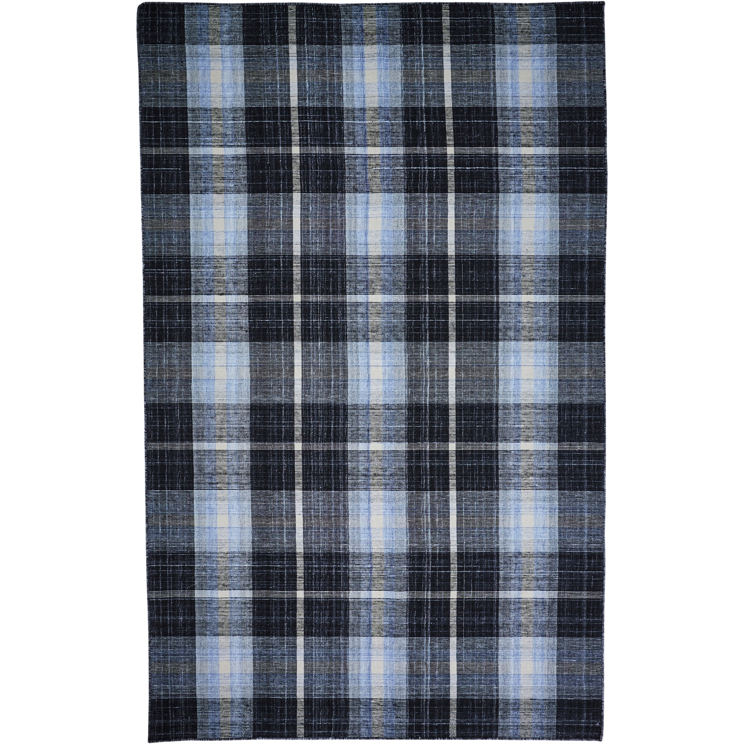 Jens Eco-Friendly PET Dhurrie, Navy/Sky Blue/White, Area Rug