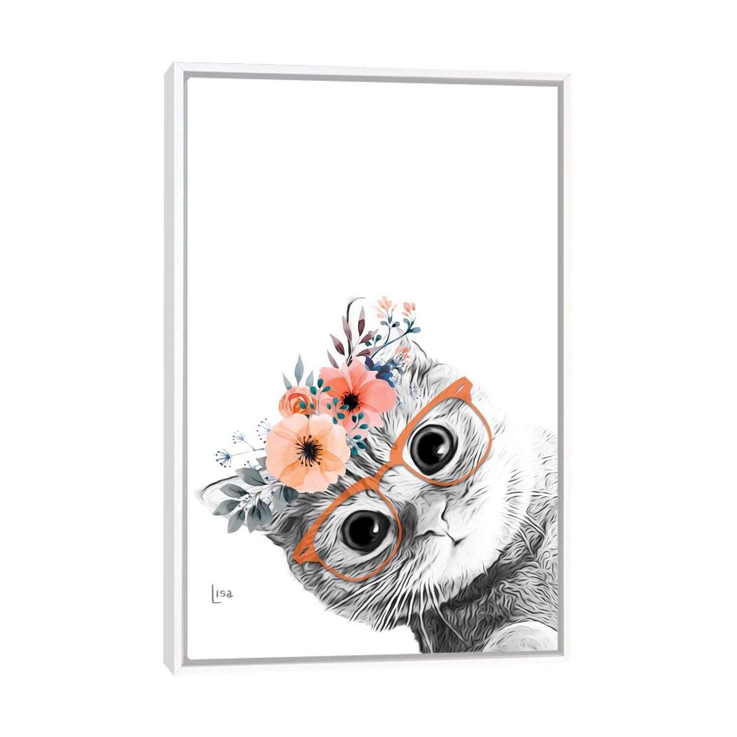 iCanvas "Cat With Glasses And Orange Flower Crown" by Printable Lisa's Pets Framed
