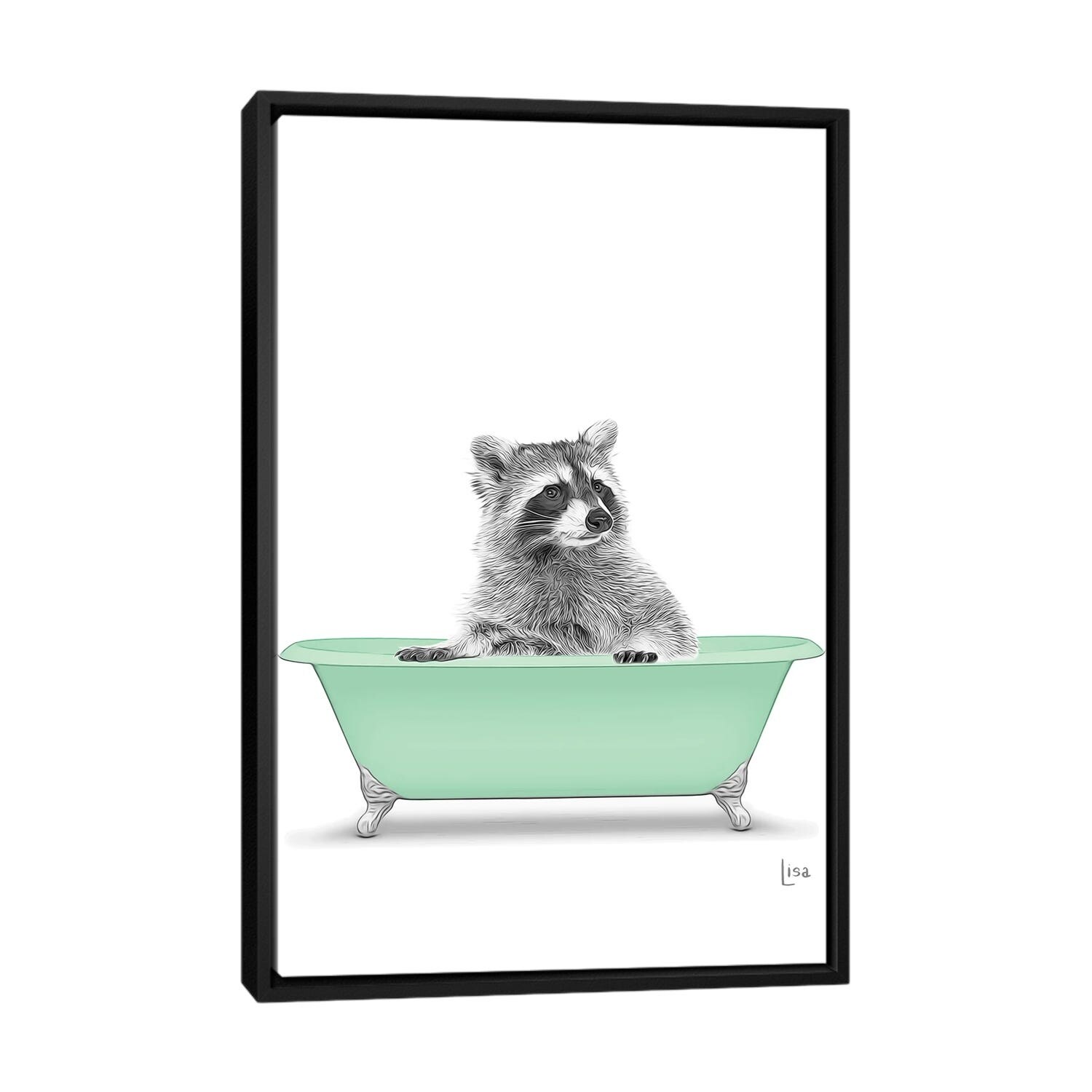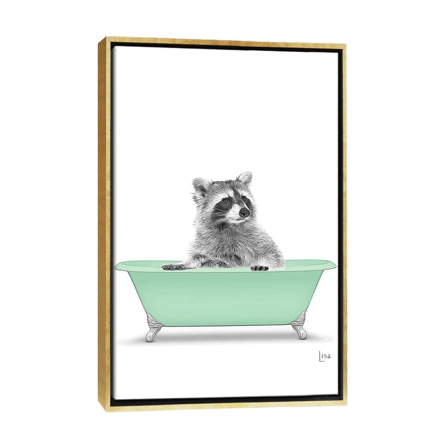 iCanvas "Racc0on In the Green Bath" by Printable Lisa's Pets Framed Canvas Print