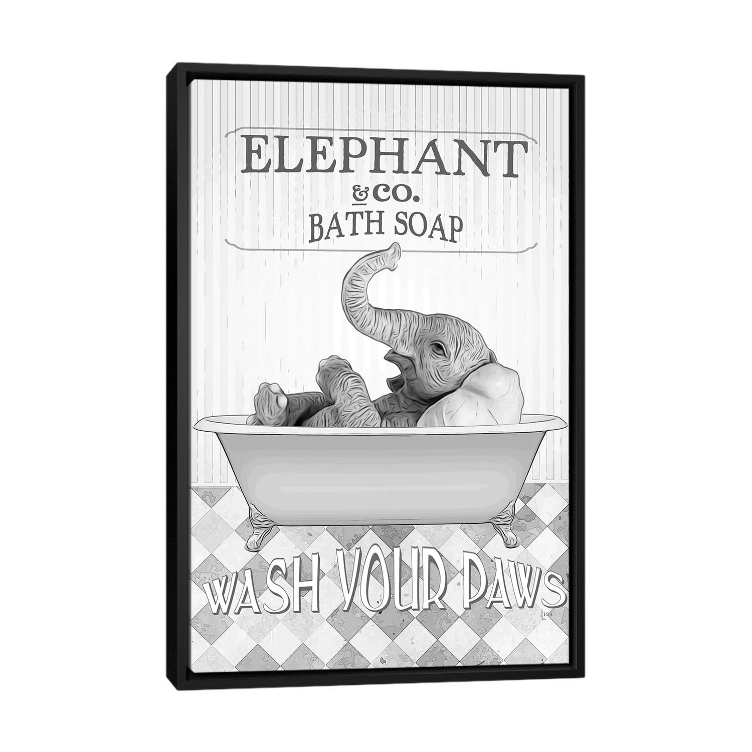iCanvas "Elephant Bw Bathroom Decor" by Printable Lisa's Pets Framed Canvas Print