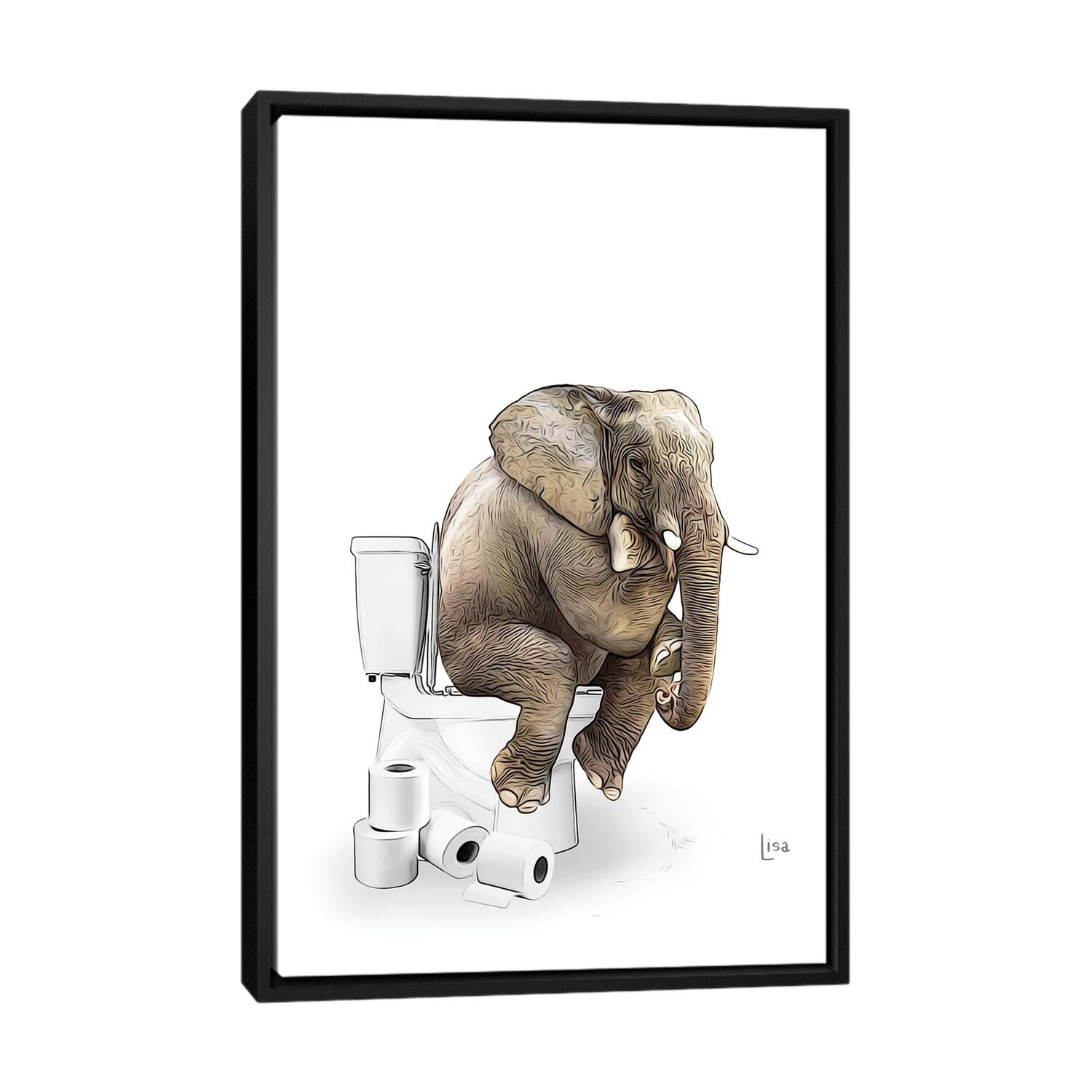 iCanvas "Color Elephant on the Toilet" by Printable Lisa's Pets Framed Canvas Print
