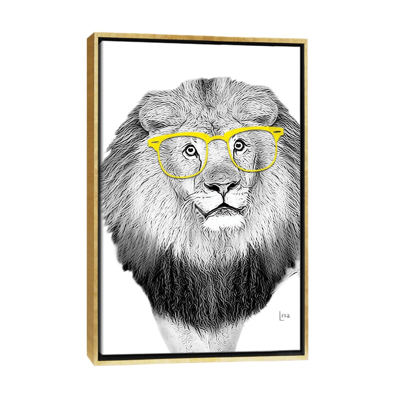 iCanvas "Lion With Yellow Glasses" by Printable Lisa's Pets Framed Canvas Print