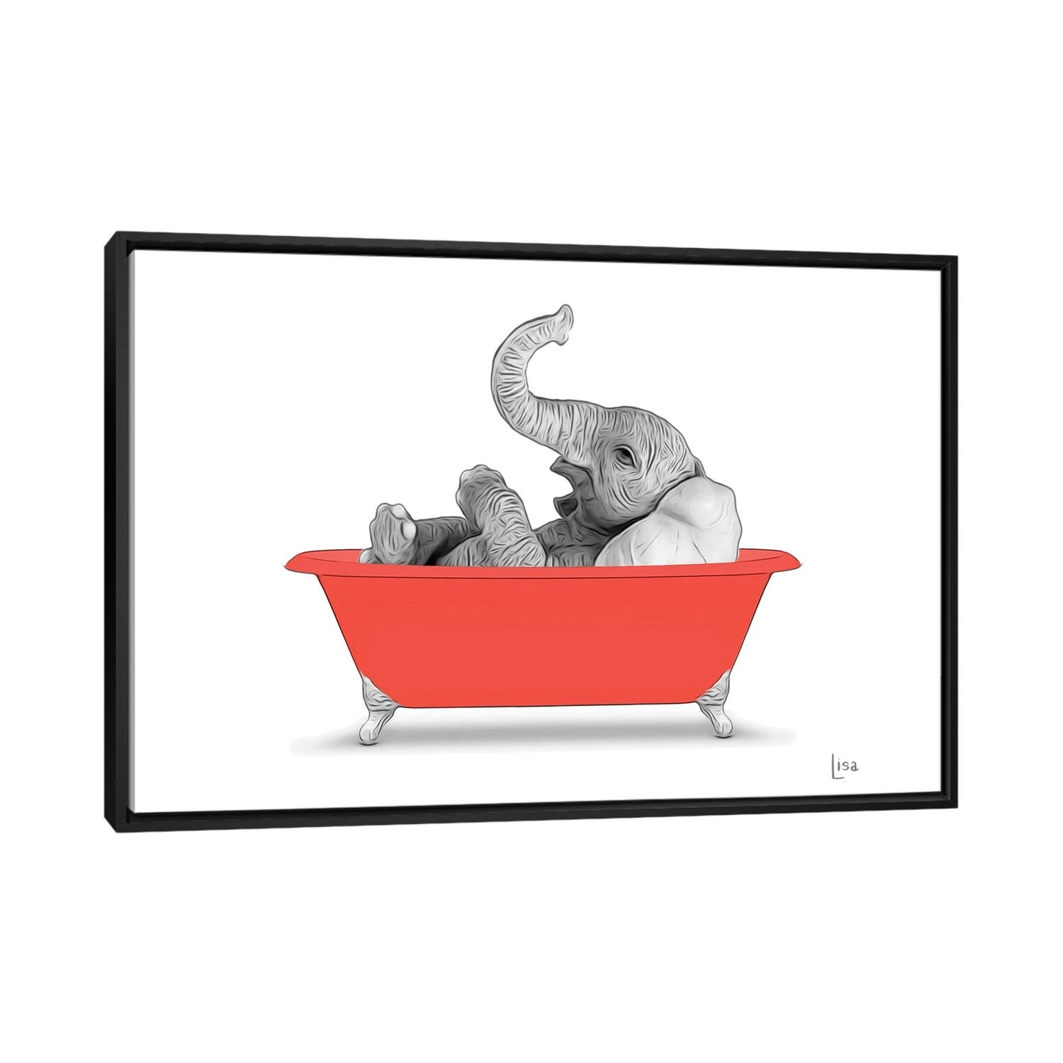 iCanvas "Elephant In the Red Bath" by Printable Lisa's Pets Framed