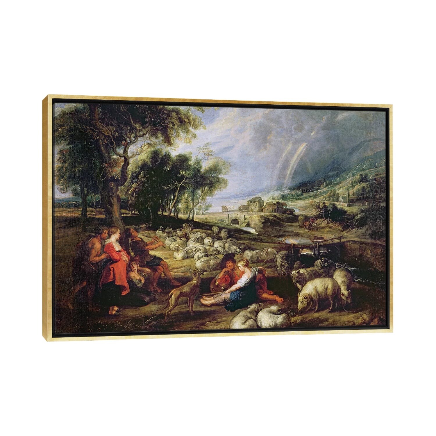 iCanvas "Landscape with a Rainbow " by Peter Paul Rubens Framed Canvas Print