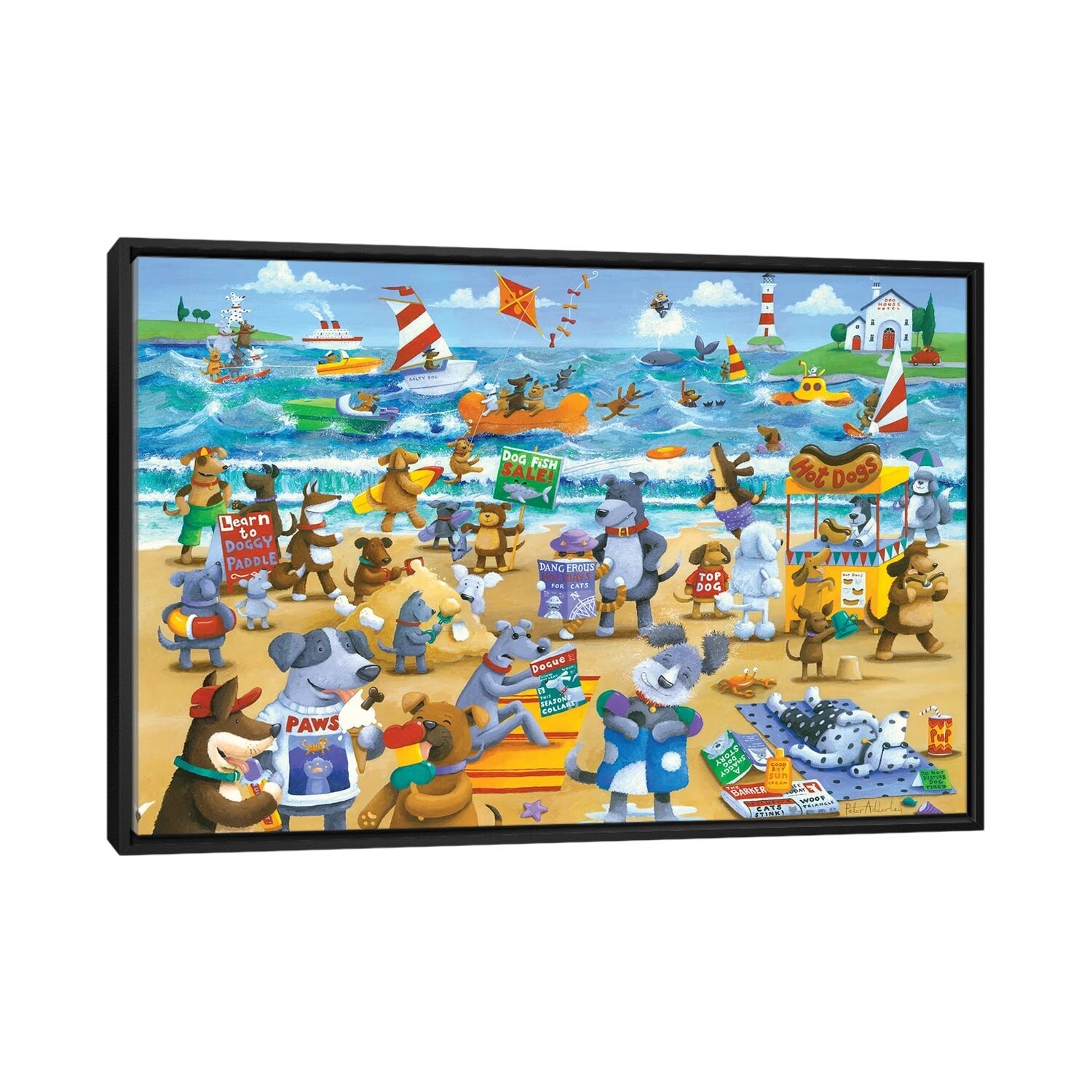 iCanvas "Dogs Beach" by Peter Adderley Framed Canvas Print