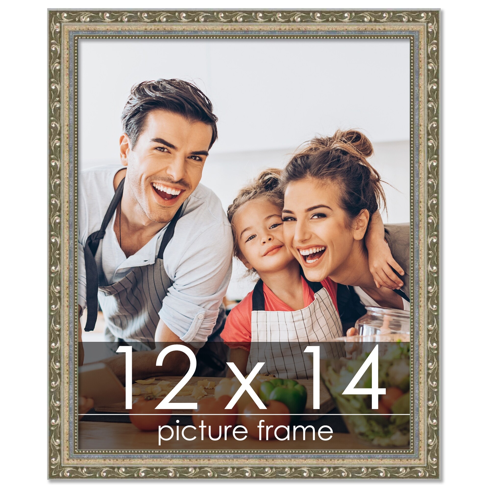 12x14 Frame Silver Ornate Antique Solid Complete Wood Picture Frame with UV Acrylic, Foam Board Backing, & Hardware