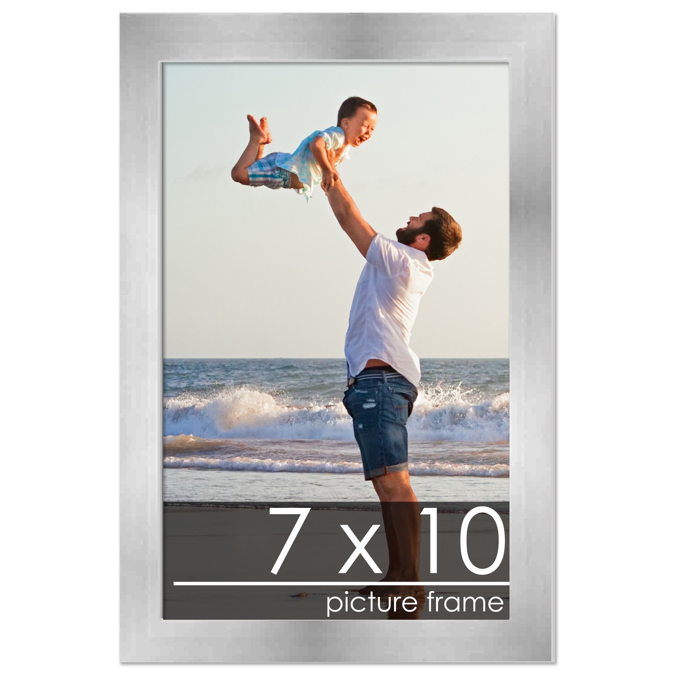7x10 Frame Silver Pewter Wood Picture Frame with UV Acrylic, Foam Board Backing, & Hardware