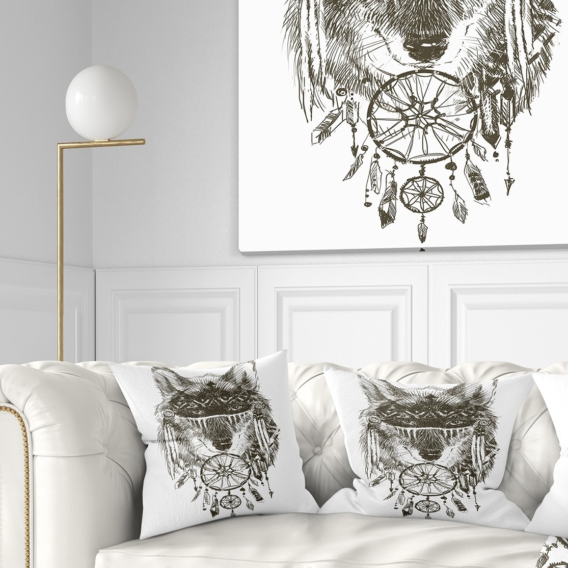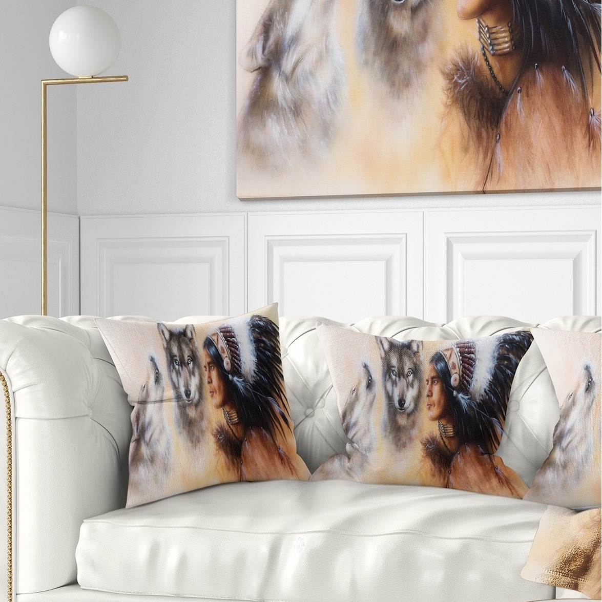 Designart 'Indian Warrior with Two Wolves' Animal Throw Pillow