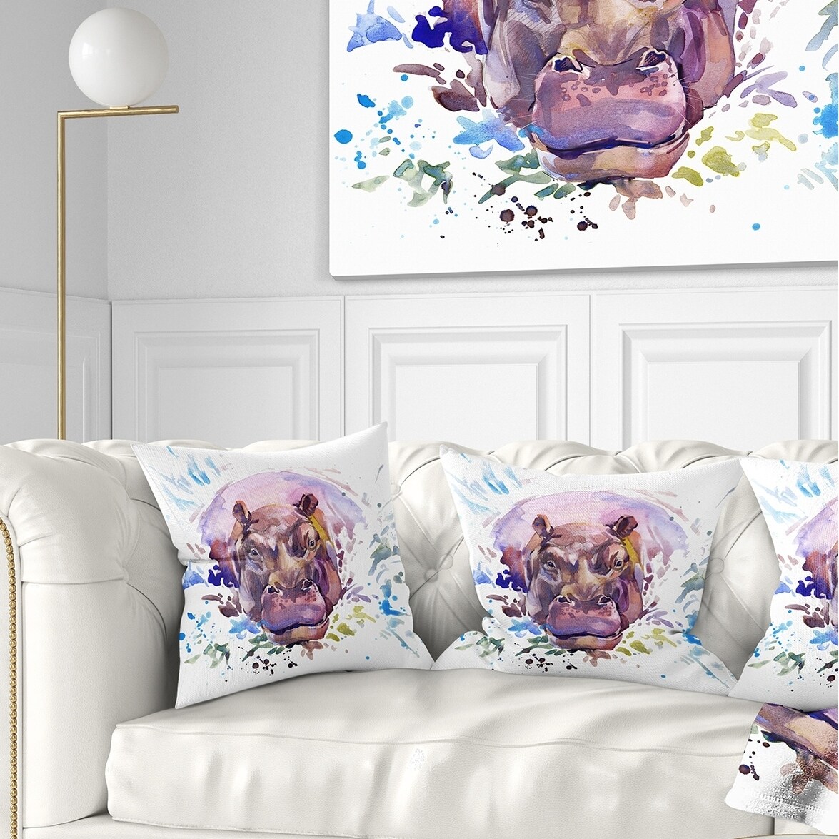 Designart 'Hippopotamus Watercolor' Animal Throw Pillow