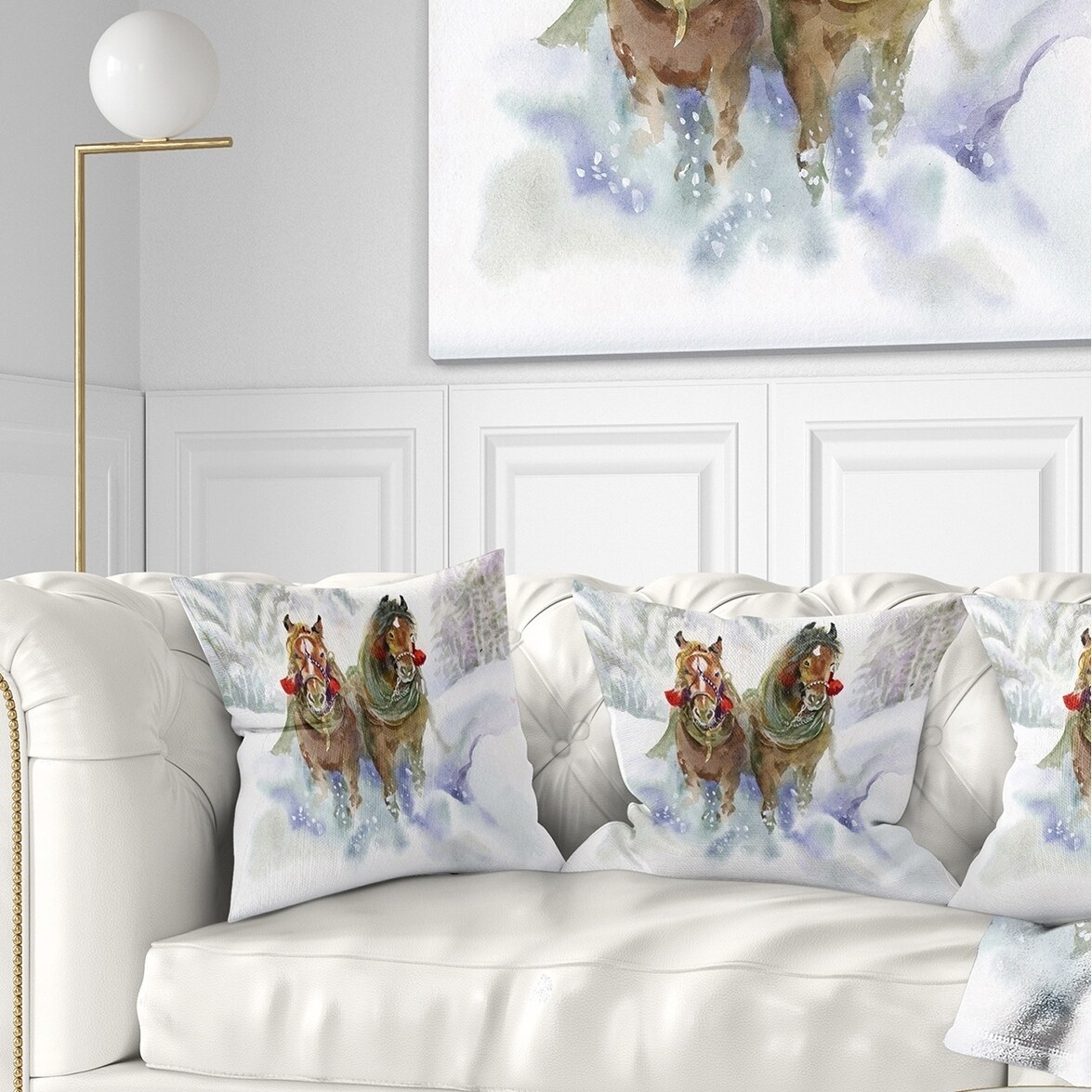 Designart 'Horses Running in Winter' Animal Throw Pillow