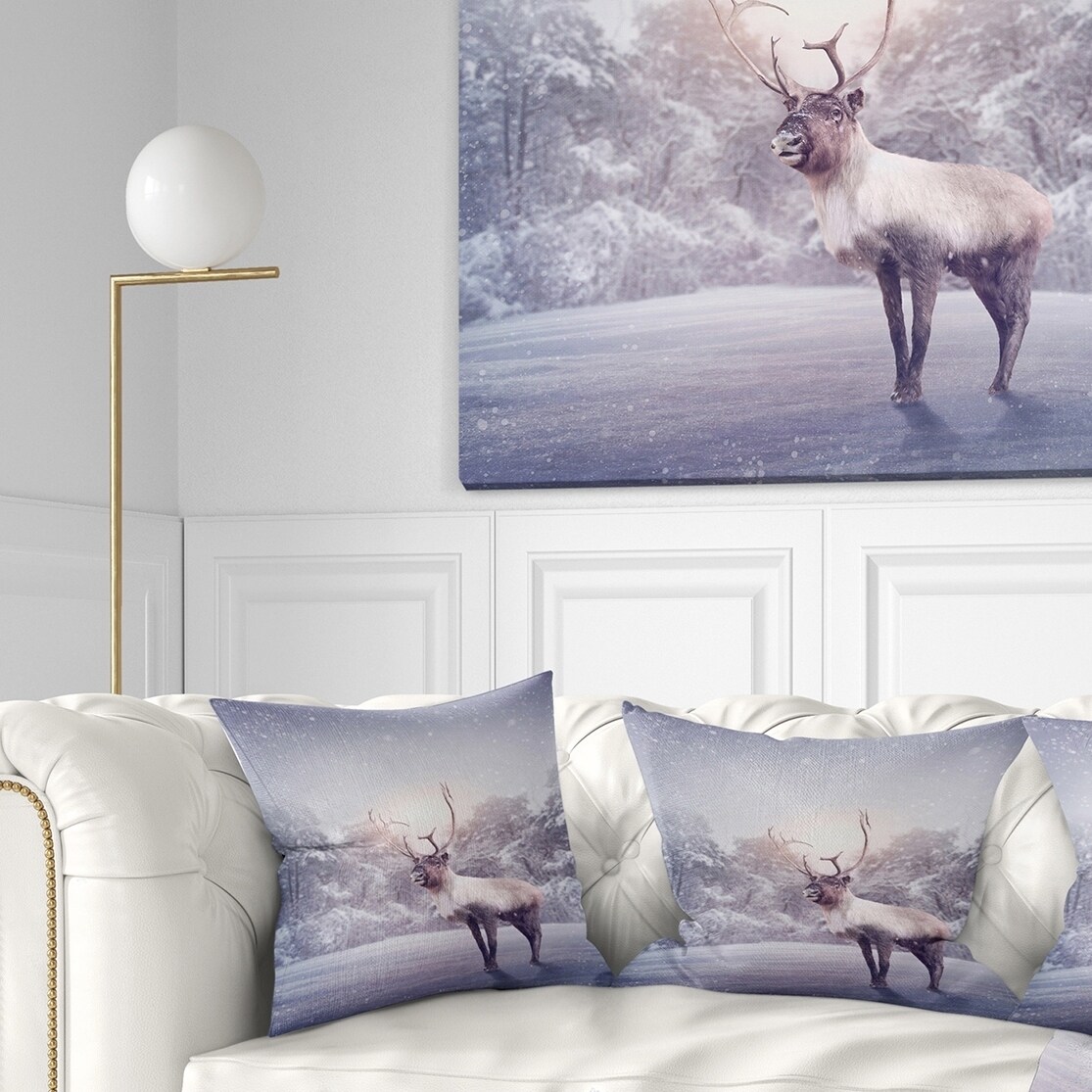 Designart 'Huge Reindeer Standing in Snow' Animal Throw Pillow