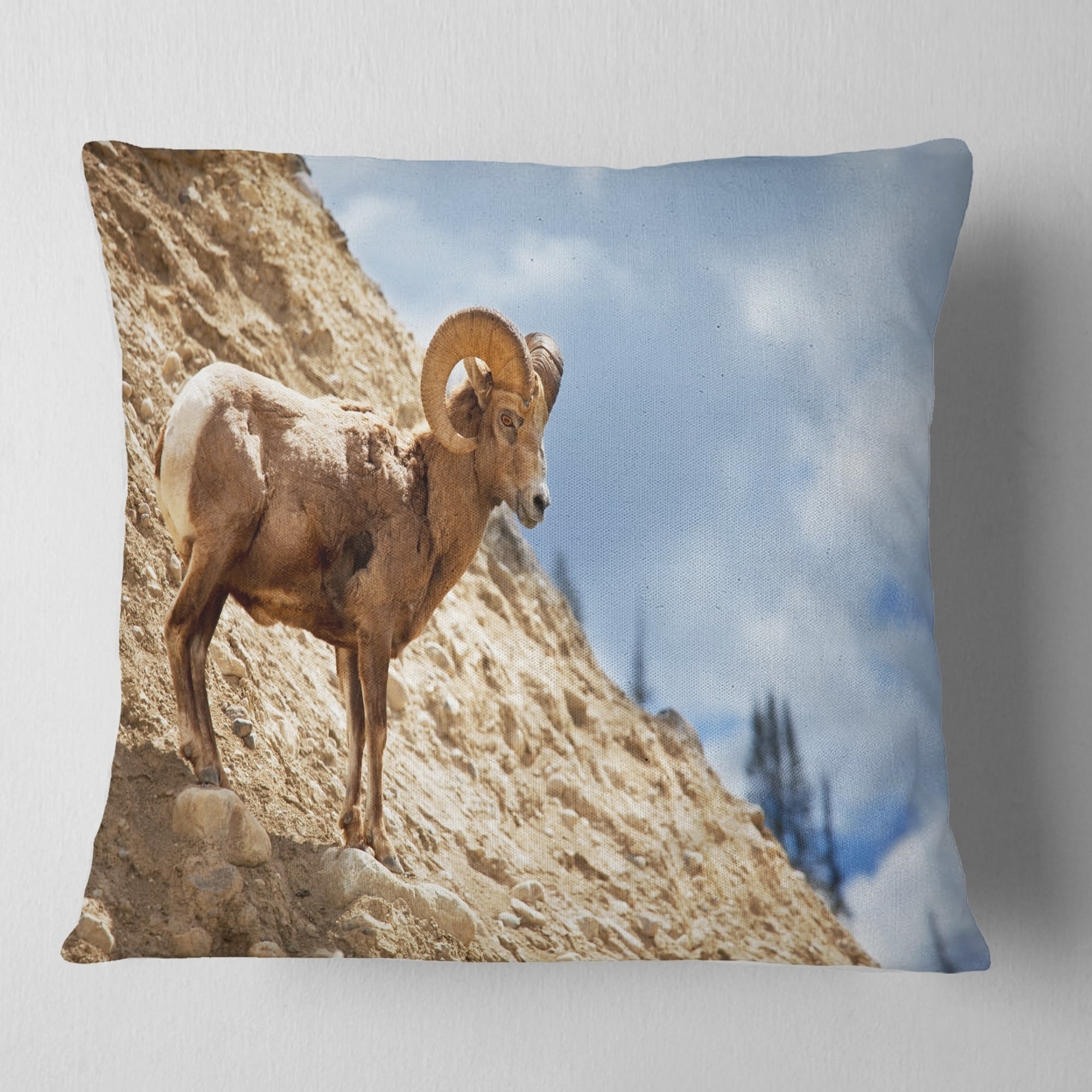 Designart 'Single Goat on Rocky Mountain' Animal Throw Pillow