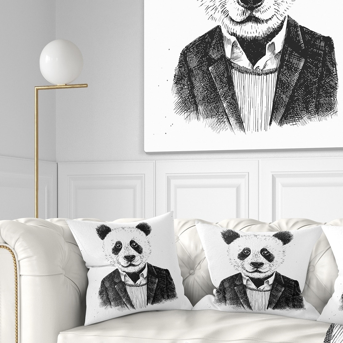 Designart 'Funny Hipster Panda Black White' Animal Throw Pillow