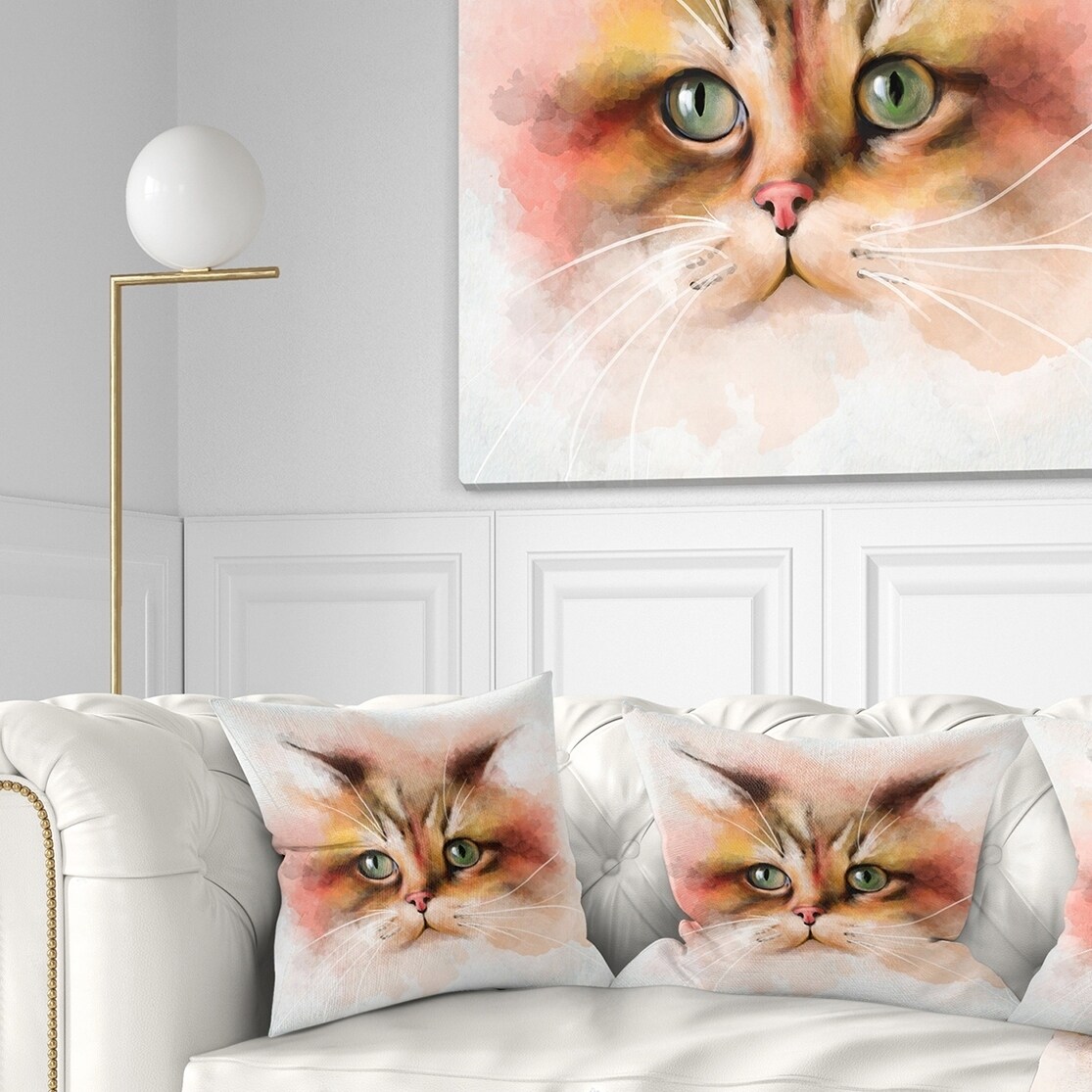 Designart 'Attractive Brown Cat Watercolor' Animal Throw Pillow