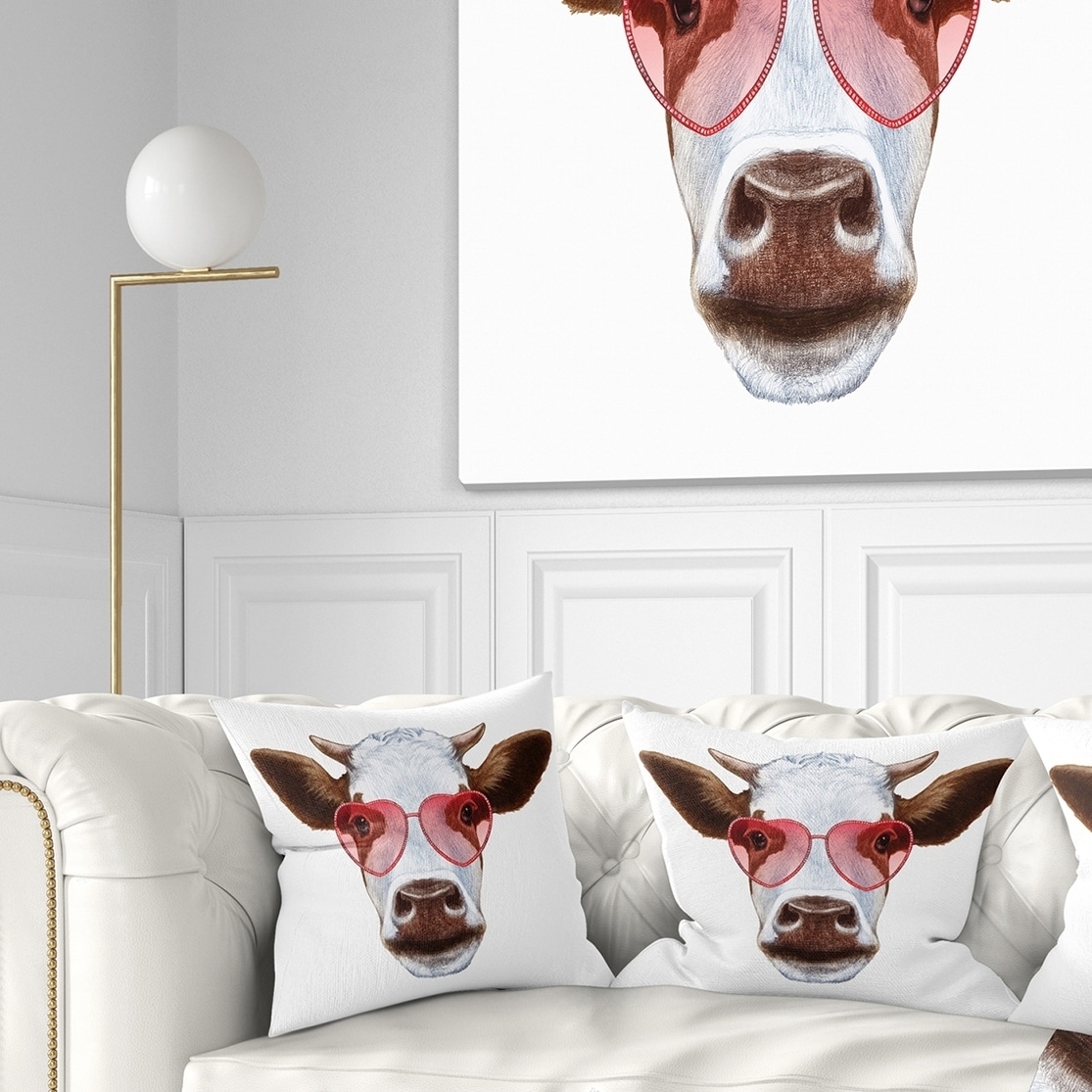 Designart 'Cow with Red Heart Glasses' Animal Throw Pillow