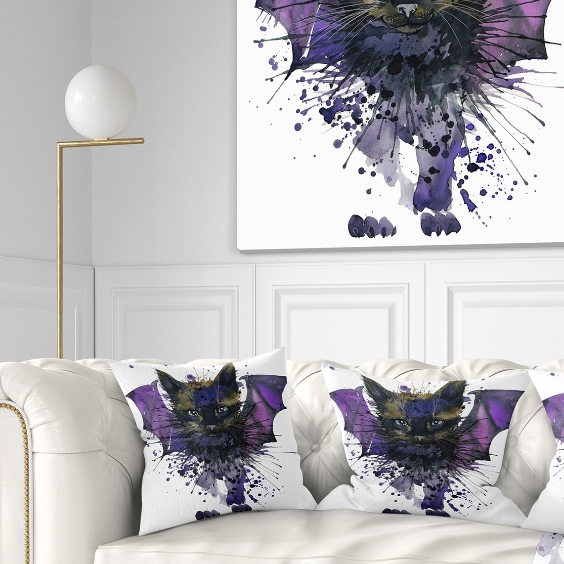 Designart 'Black Cat with Blue Wings' Animal Throw Pillow