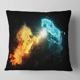 Designart 'Fire and Water Abstract Horses' Animal Throw Pillow