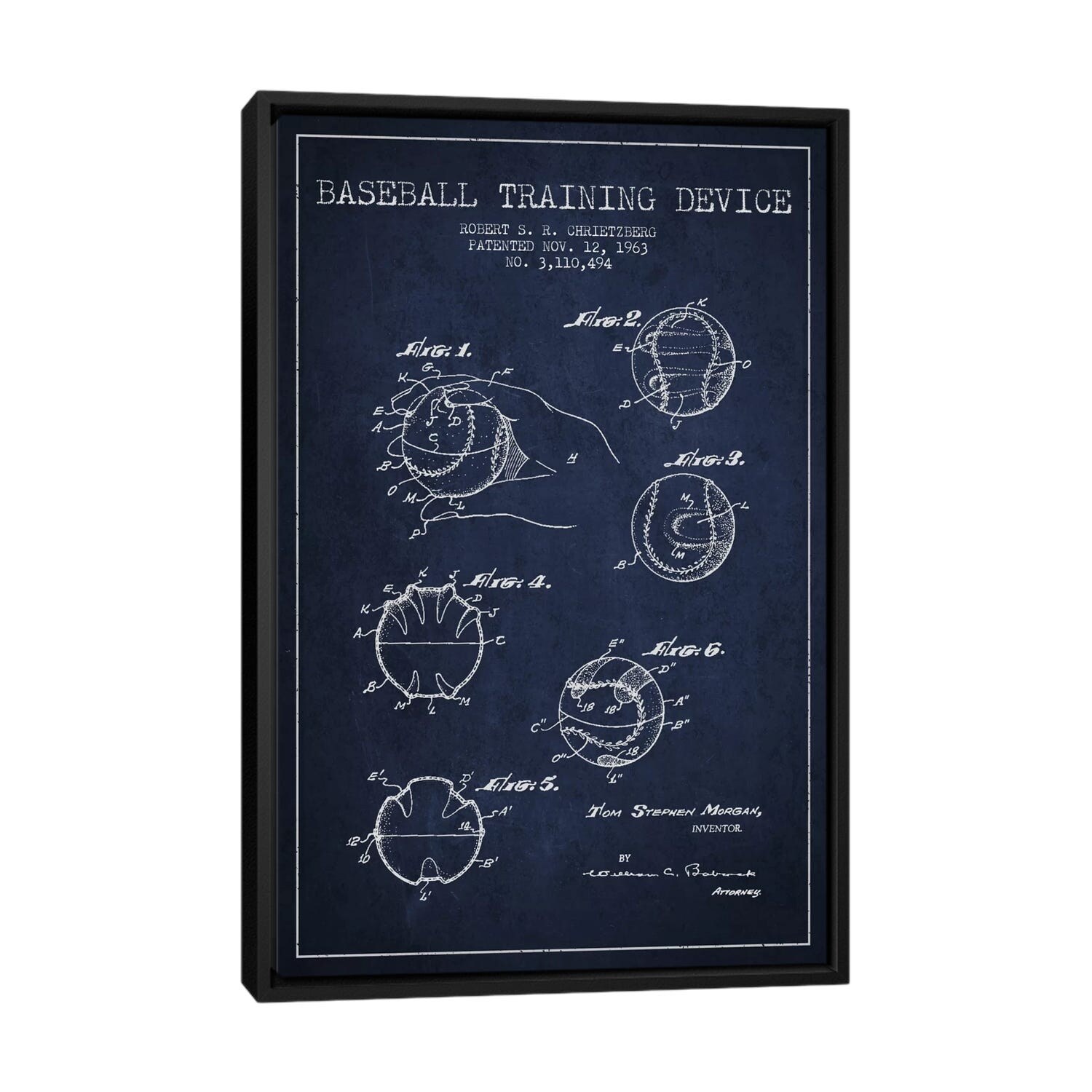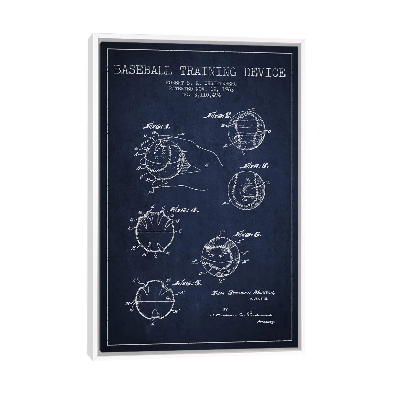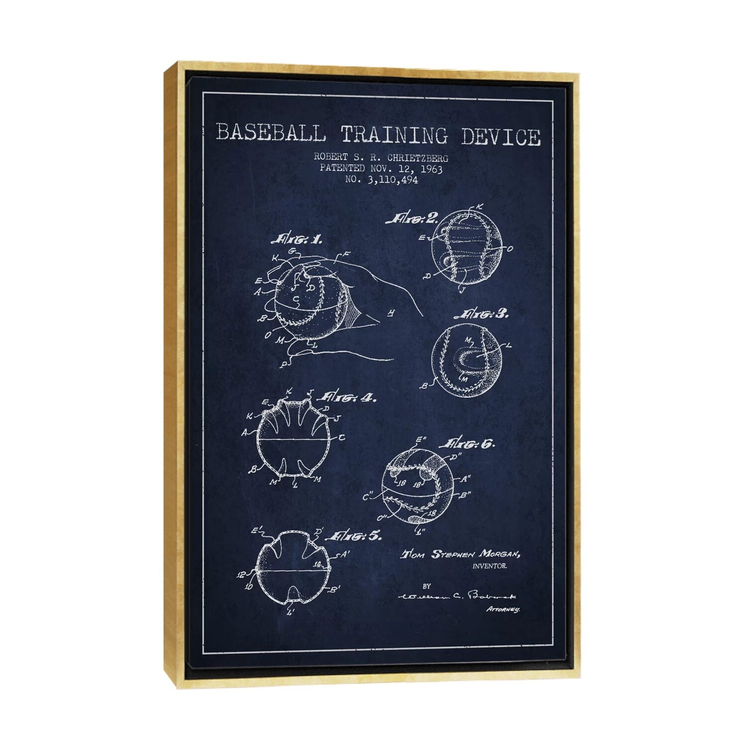 iCanvas "Baseball Device Navy Blue Patent Blueprint" by Aged Pixel Framed Canvas Print