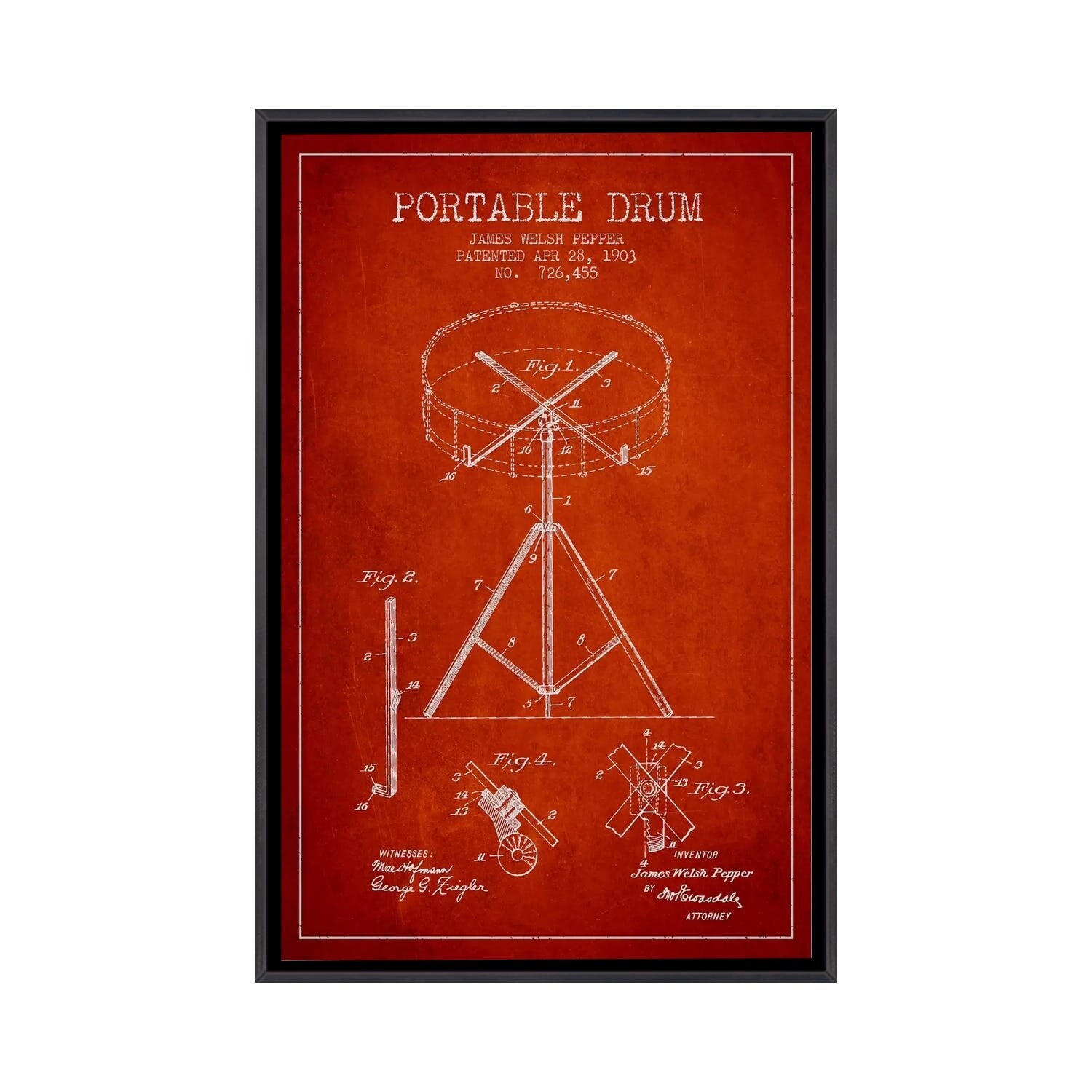iCanvas "Drum Red Patent Blueprint" by Aged Pixel Framed Canvas Print