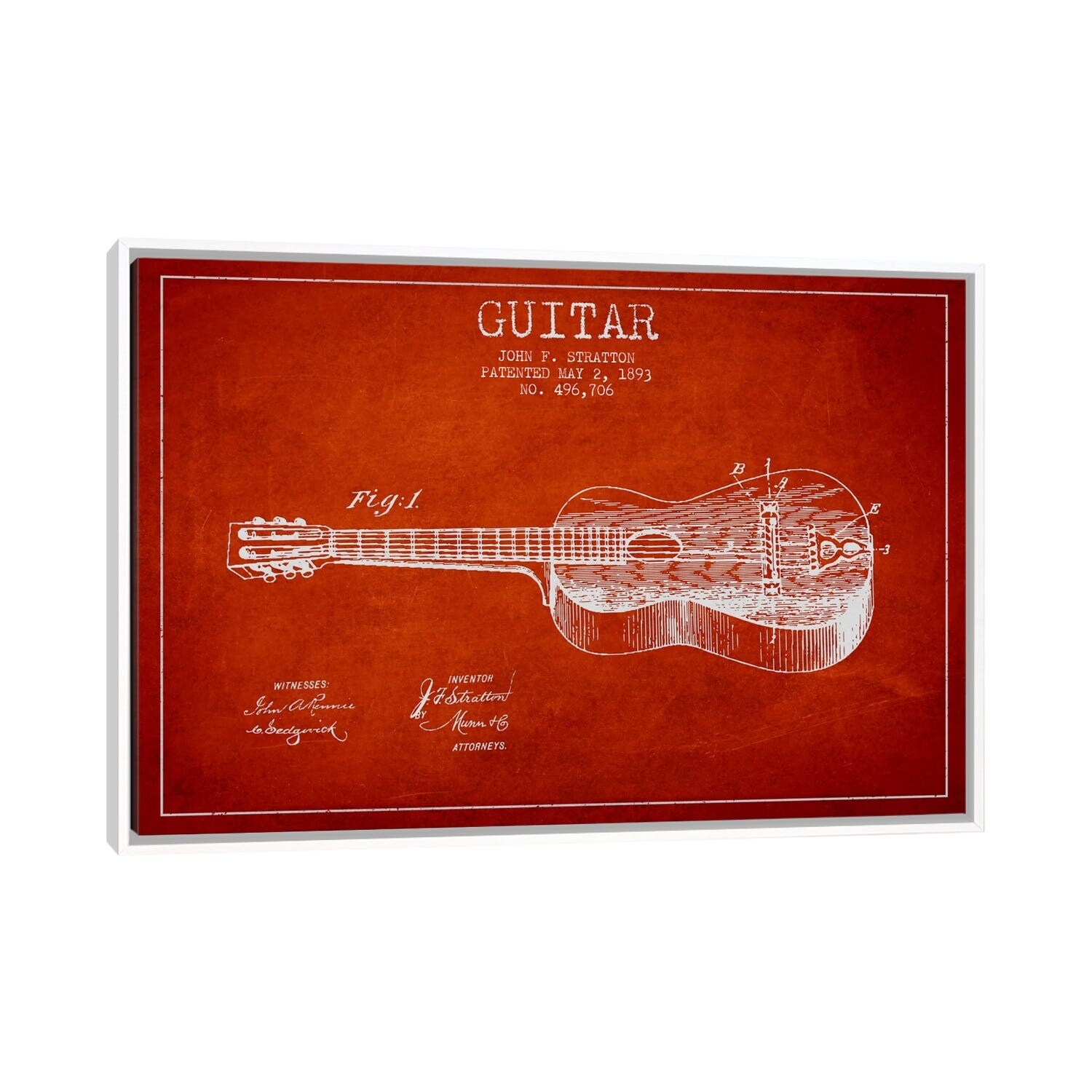 iCanvas "Guitar Red Patent Blueprint" by Aged Pixel Framed