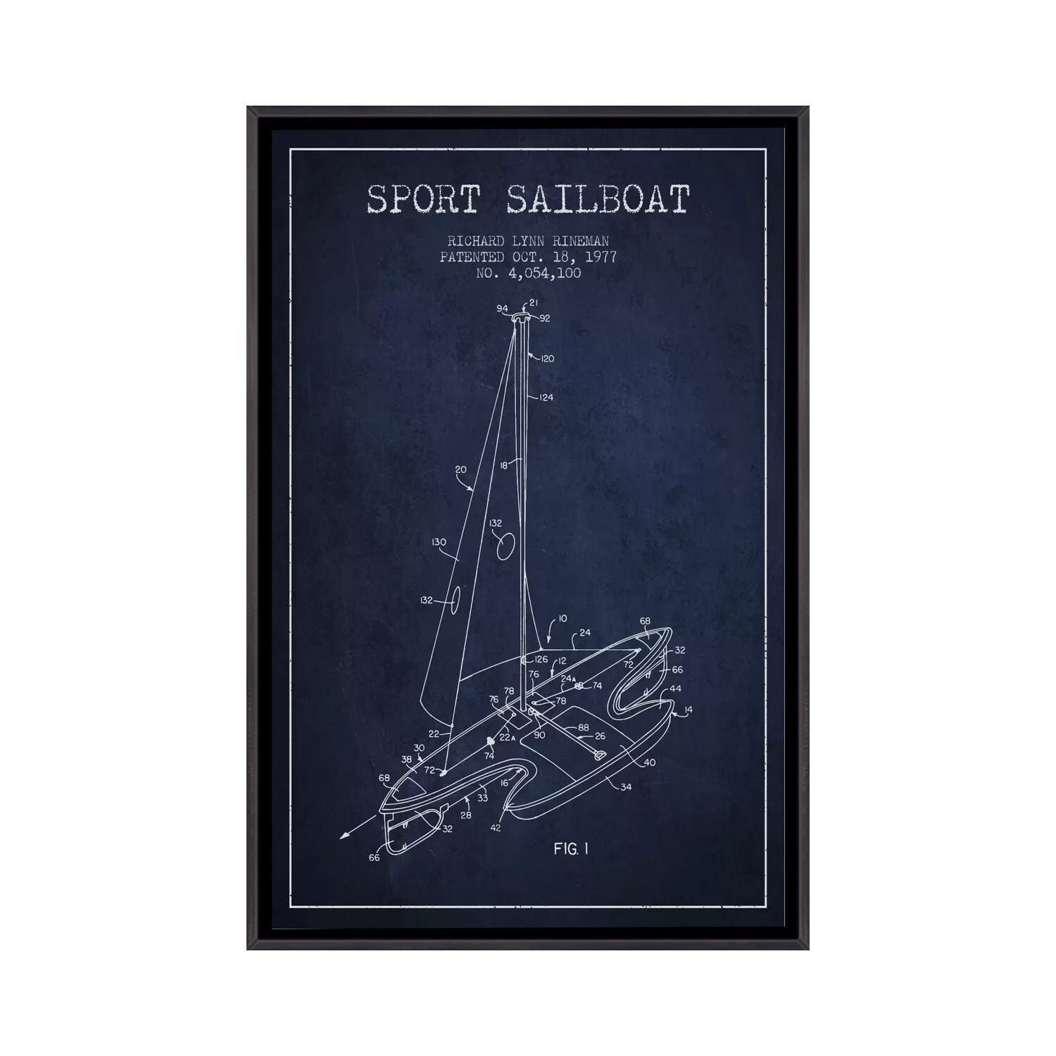 iCanvas "Sport Sailboat 1 Navy Blue Patent Blueprint" by Aged Pixel Framed