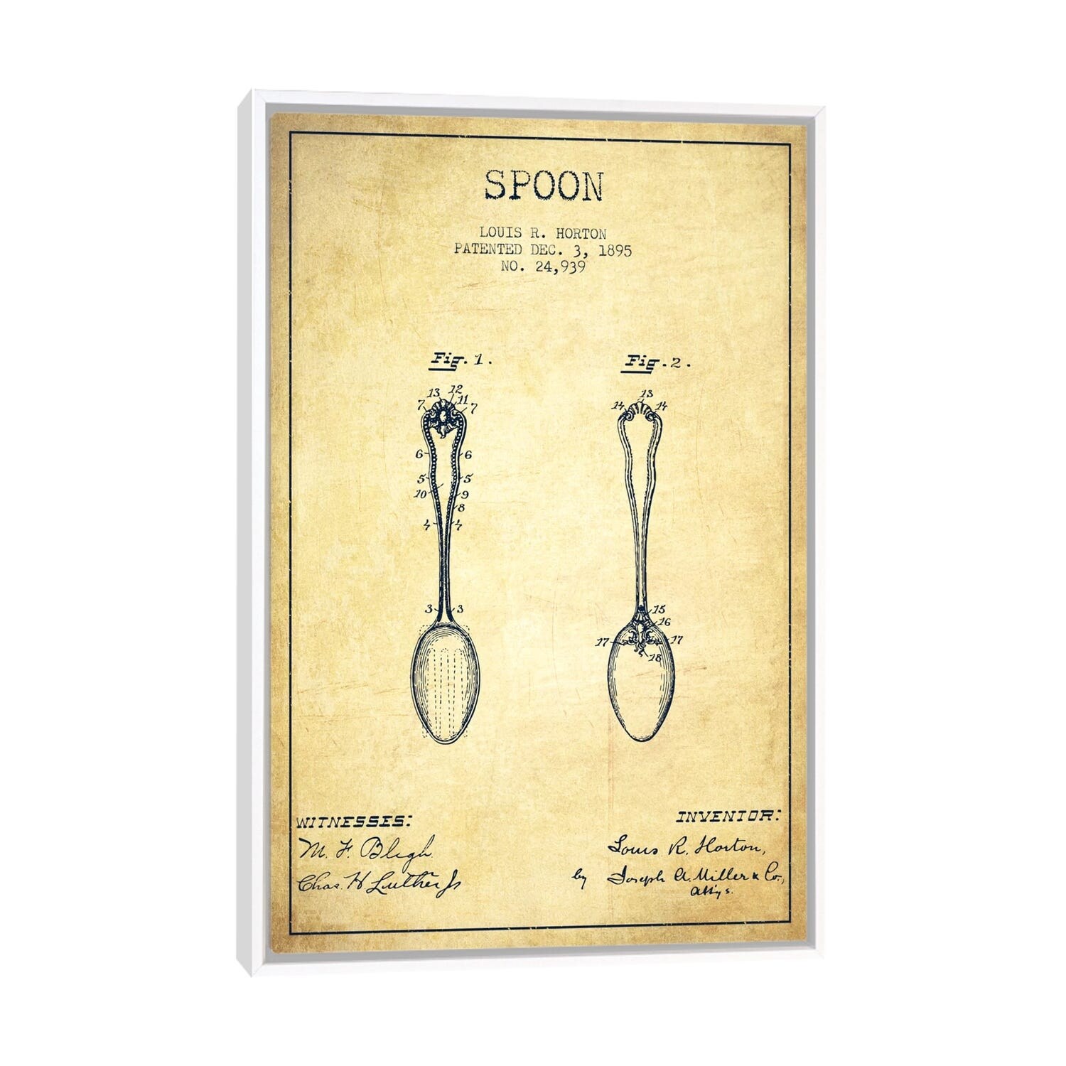 iCanvas "Spoon Vintage Patent Blueprint" by Aged Pixel Framed