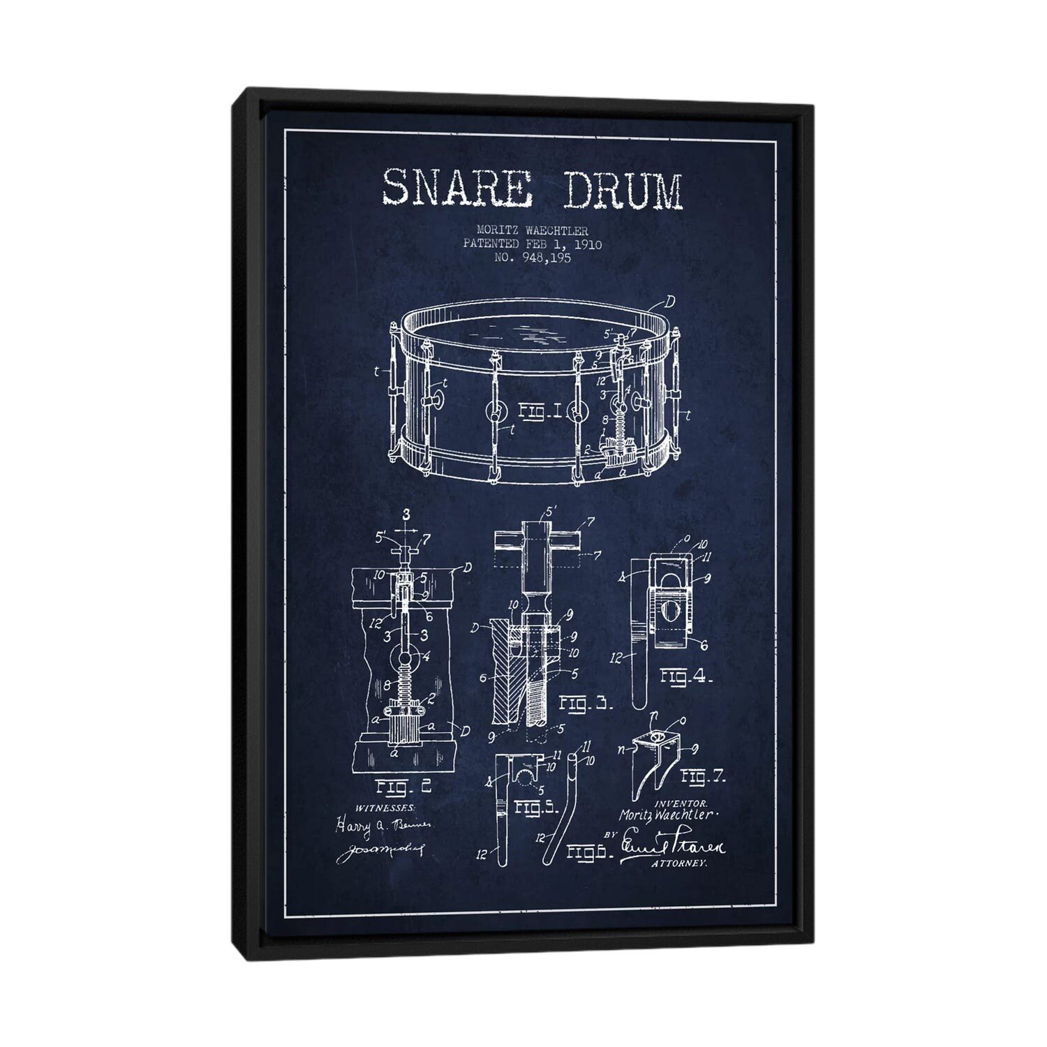 iCanvas "Waechtler Snare Navy Blue Patent Blueprint" by Aged Pixel Framed