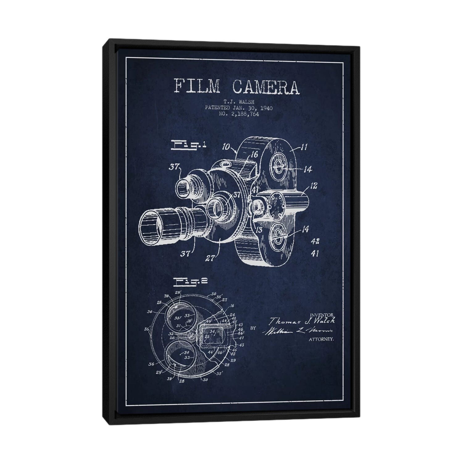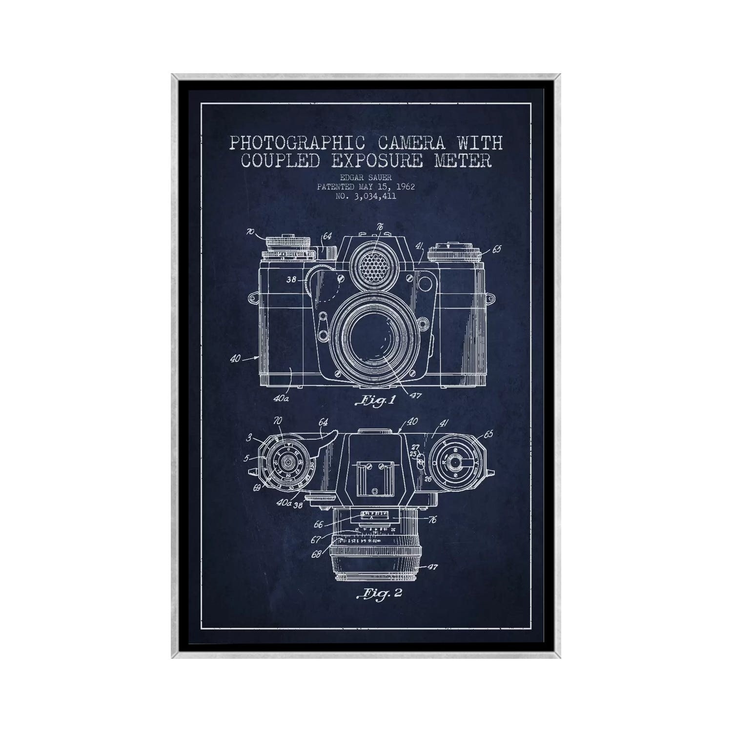 iCanvas "Camera Navy Blue Patent Blueprint" by Aged Pixel Framed